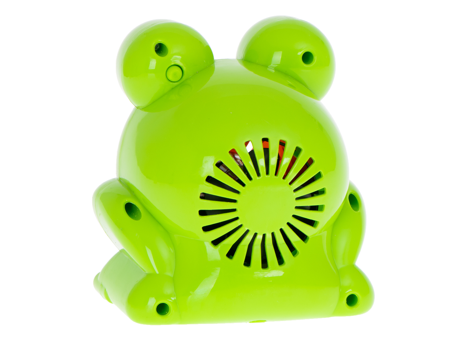 za prawym oczkiem żaby uruchamiający wiatraczek i obrót tarczy i gotowe. Zabawka