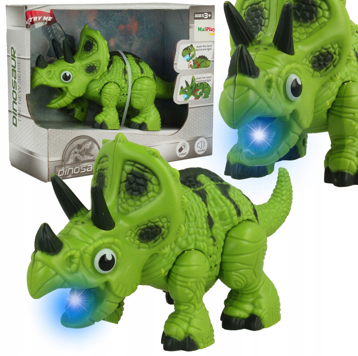 DINOZAUR NA BATERIE CHODZI ŚWIECI RYCZY ZABAWKA INTERAKTYWNA DLA DZIECI