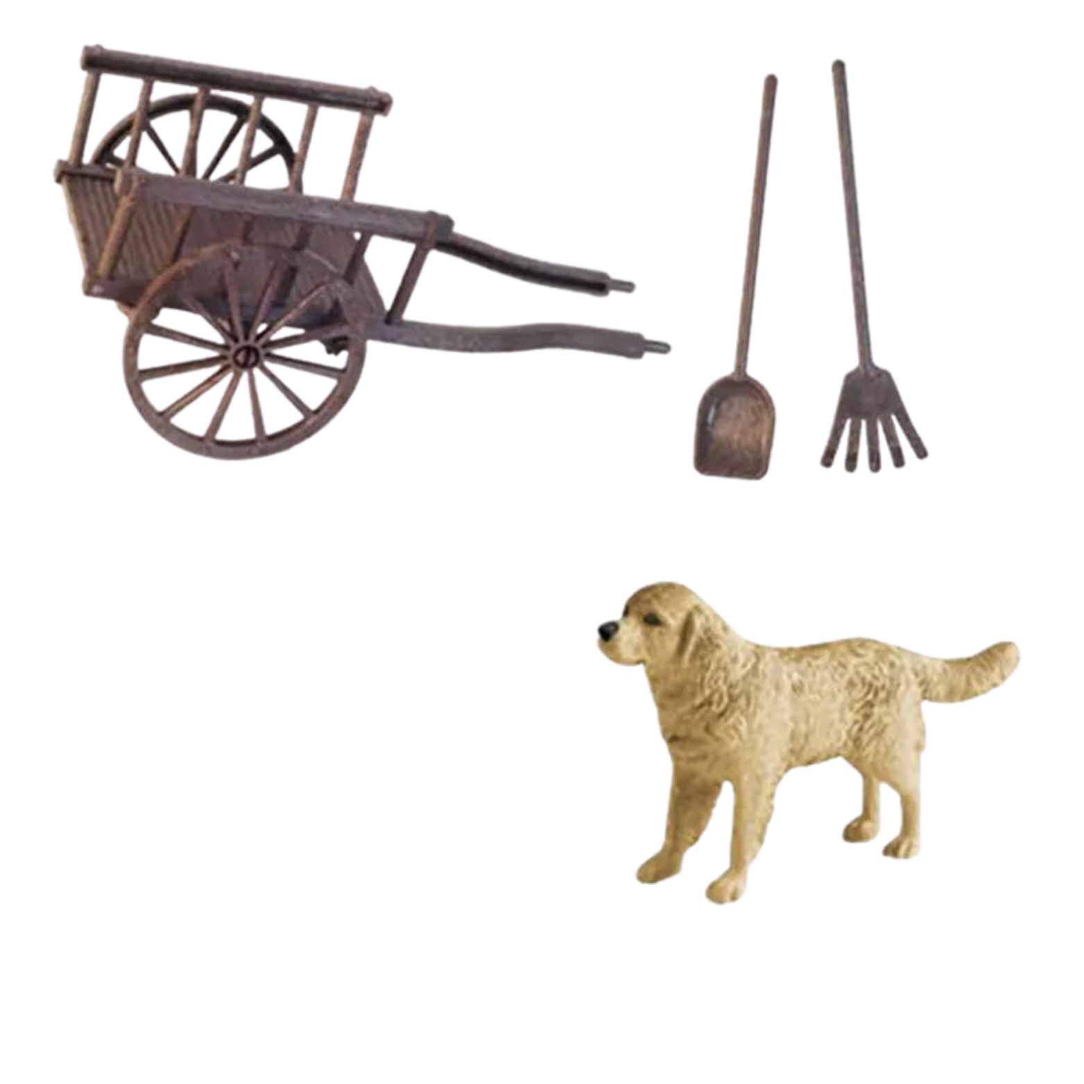 Zestaw zawiera wiele elementów, które umożliwiają dziecku stworzenie swojego własnego wiejskiego świata. Dzięki różnorodnym akcesoriom, takim jak domek, narzędzia rolnicze, stół, krzesła, ławka, łóżko i wiele innych, maluch może tworzyć swoje opowieści i symulować życie na farmie.