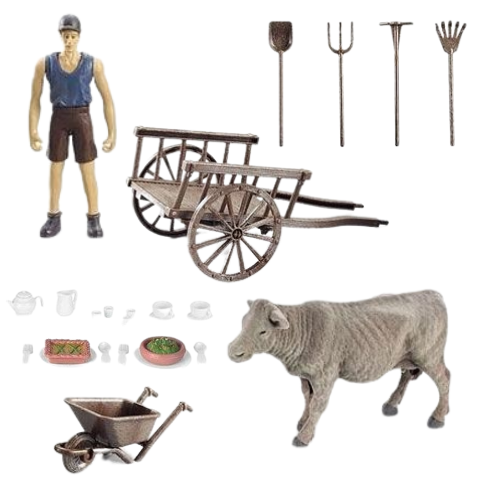 Figurkę krowy można karmić, zabawiać i troszczyć się o nie na swojej farmie. Zestaw zawiera narzędzia rolnicze, takie jak łopata, widły i grabie. Dzięki nim można pomóc w pracach na farmie i utrzymać ją w doskonałym stanie.