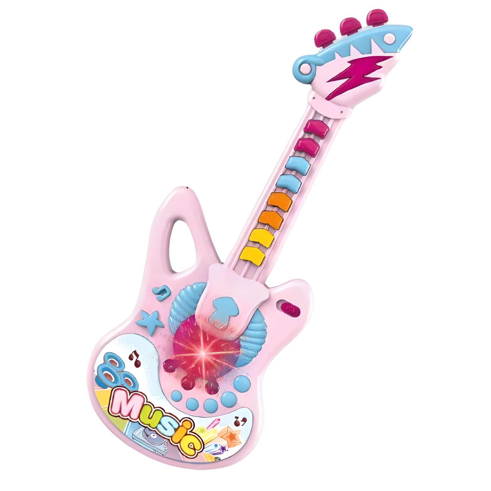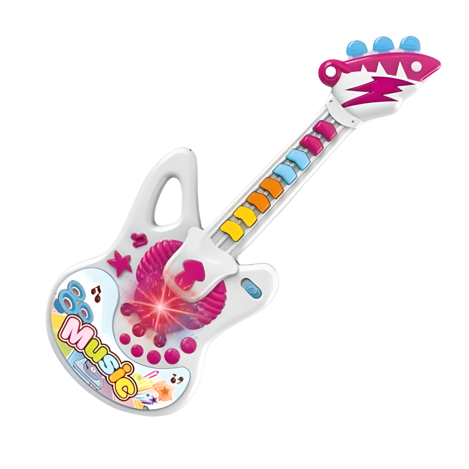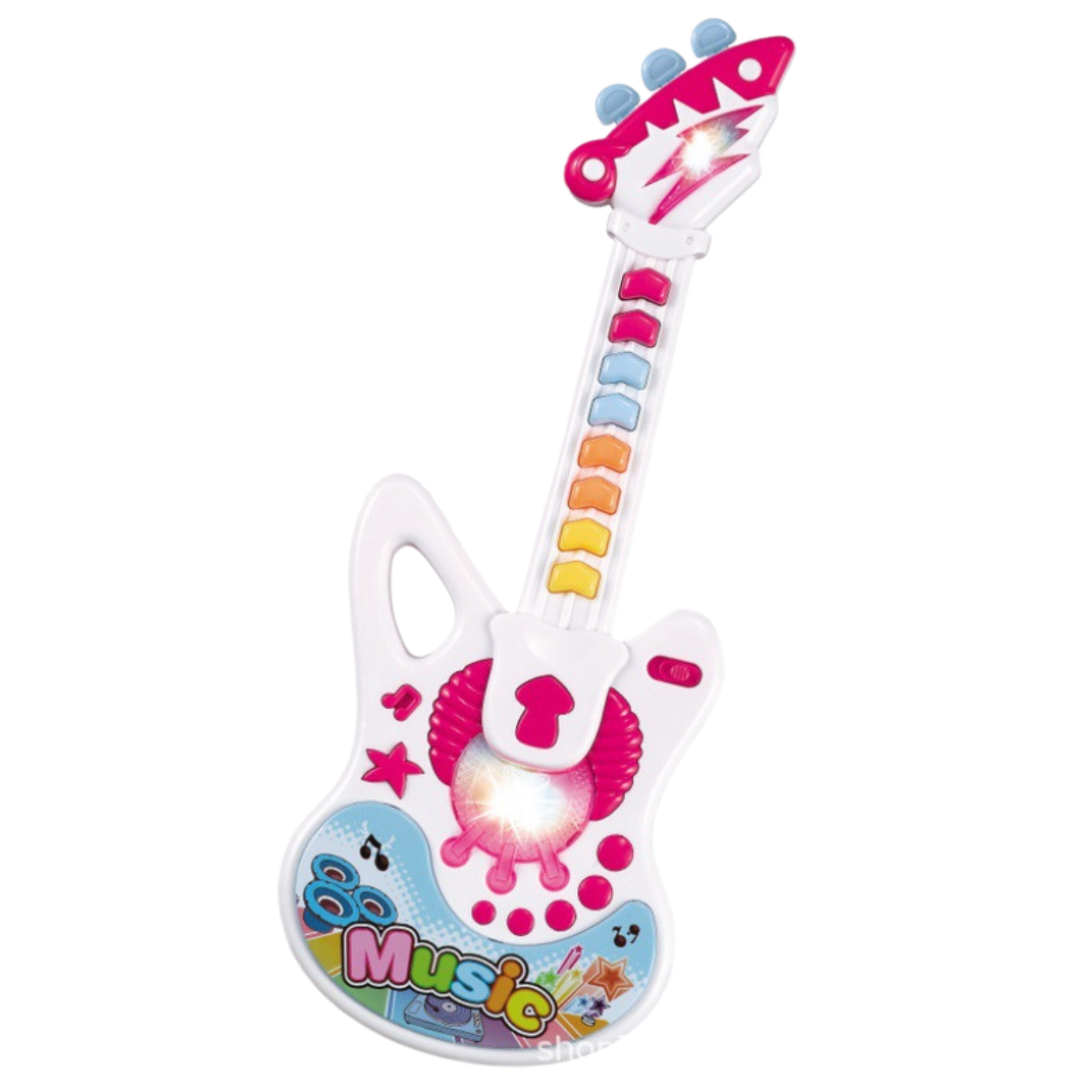 Instrument oferuje różnorodność melodii, co pozwala dziecku eksperymentować i odkrywać różne brzmienia. To świetny sposób na rozwijanie słuchu muzycznego. Podczas korzystania z gitary, dzieci doświadczają nie tylko różnorodnych dźwięków, ale także fascynujących efektów świetlnych! To element, który dodaje dodatkowej atrakcyjności instrumentowi.