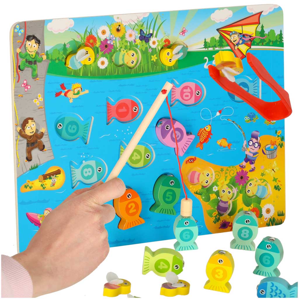 Gra drewniana rybki łowienie rybek na magnes pszczółki montessori