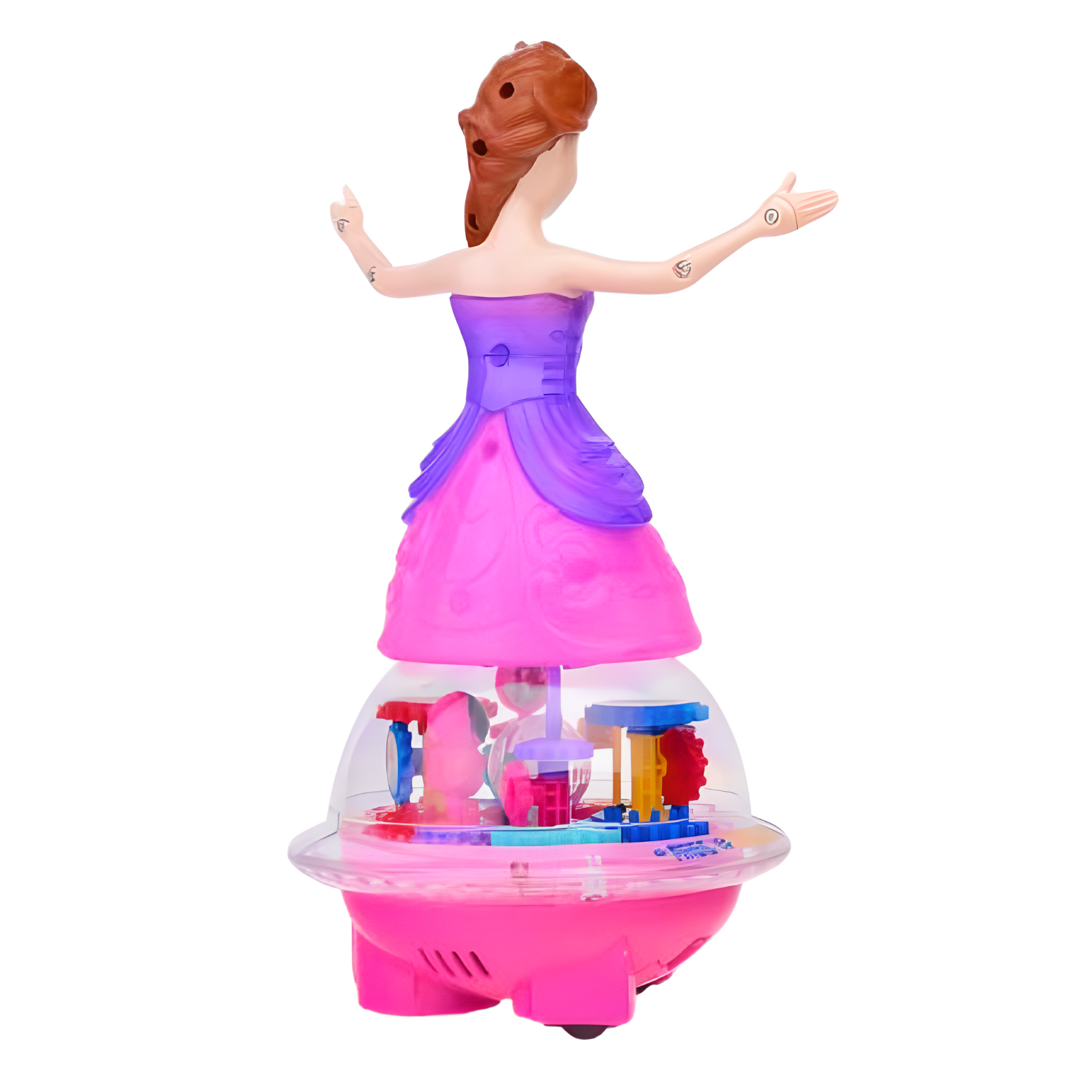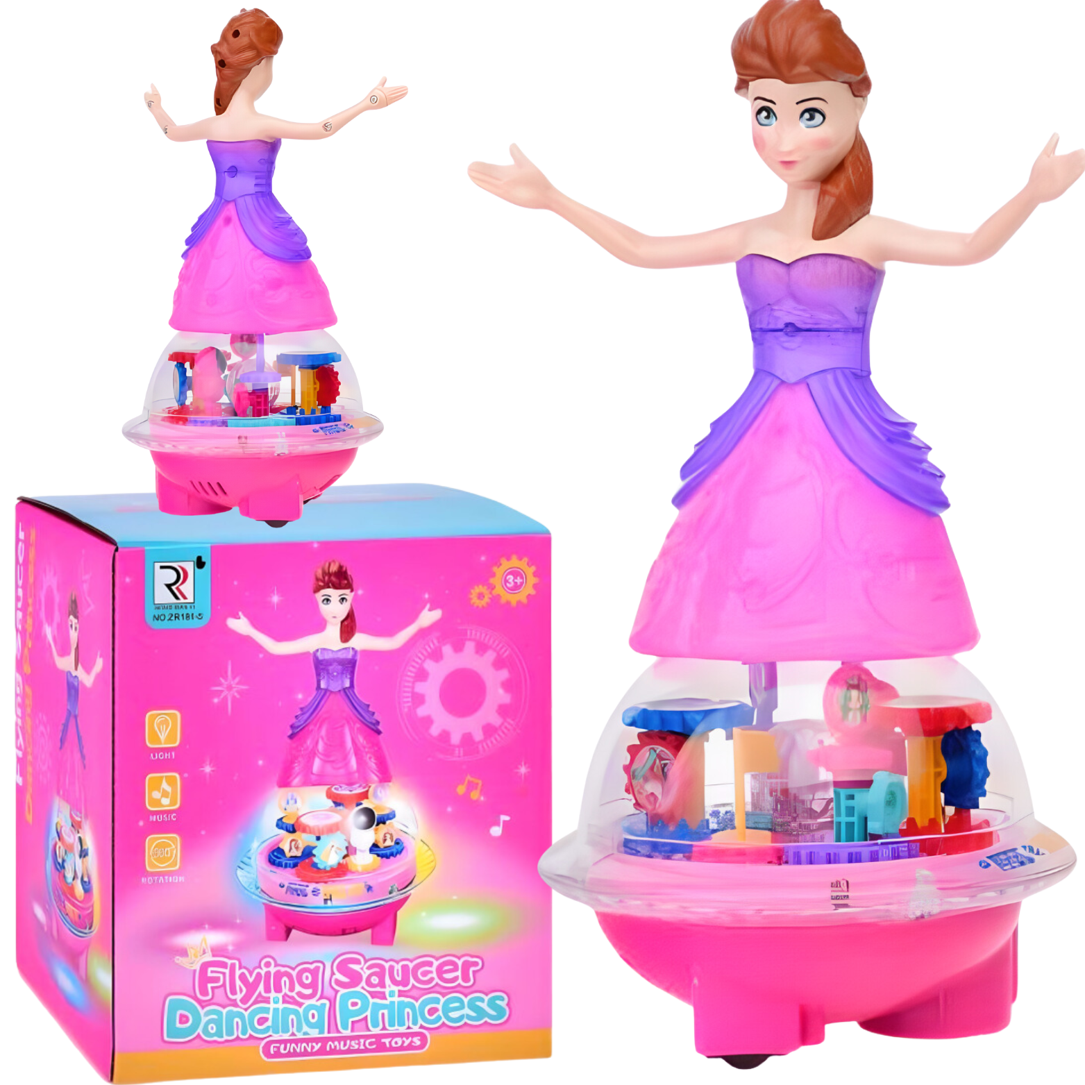Lalka księżniczka to niezwykła zabawka, która przenosi dzieci w świat magicznej zabawy i przygody. Zawiera poruszające się kolorowe zębatki, które dodają uroku i fascynacji, pozytywkę odtwarzającą wesołe i spokojne melodie oraz kolorowe światełka, które tworzą magiczną aurę wokół zabawki. Dodatkowo, lalka obraca się o 360° i może się przemieszczać, co zapewnia dynamiczną i interaktywną zabawę. Zabawka ta nie tylko zapewnia rozrywkę, ale także rozwija wyobraźnię i kreatywność dziecka.