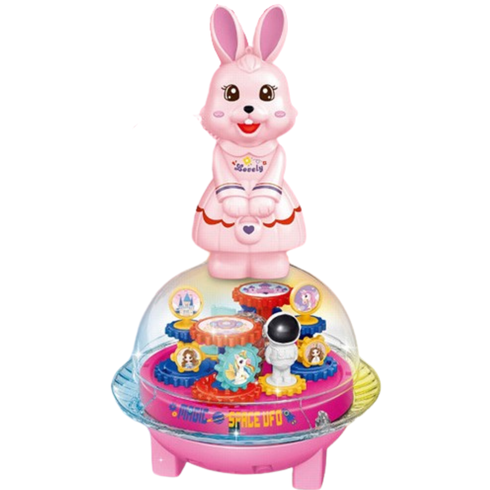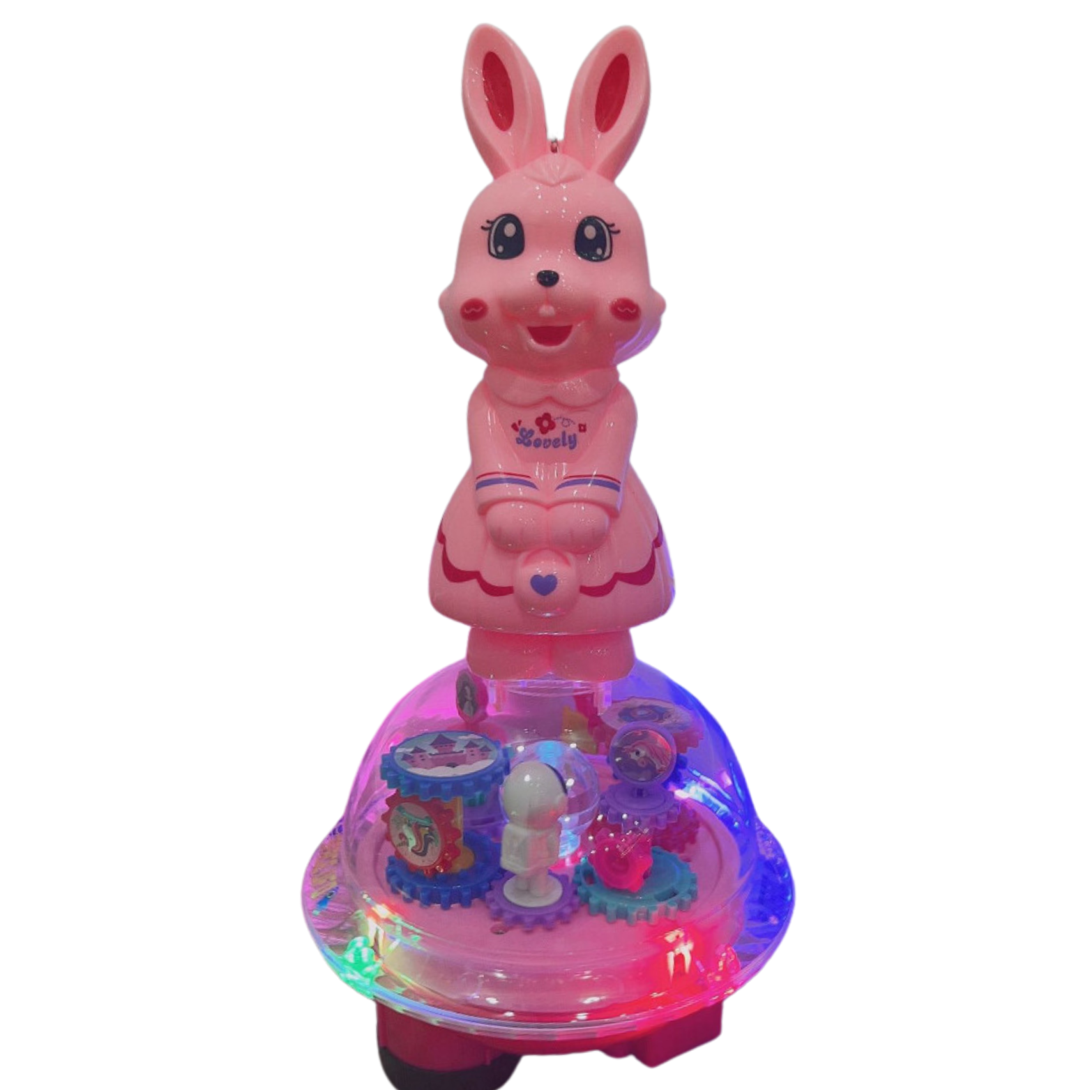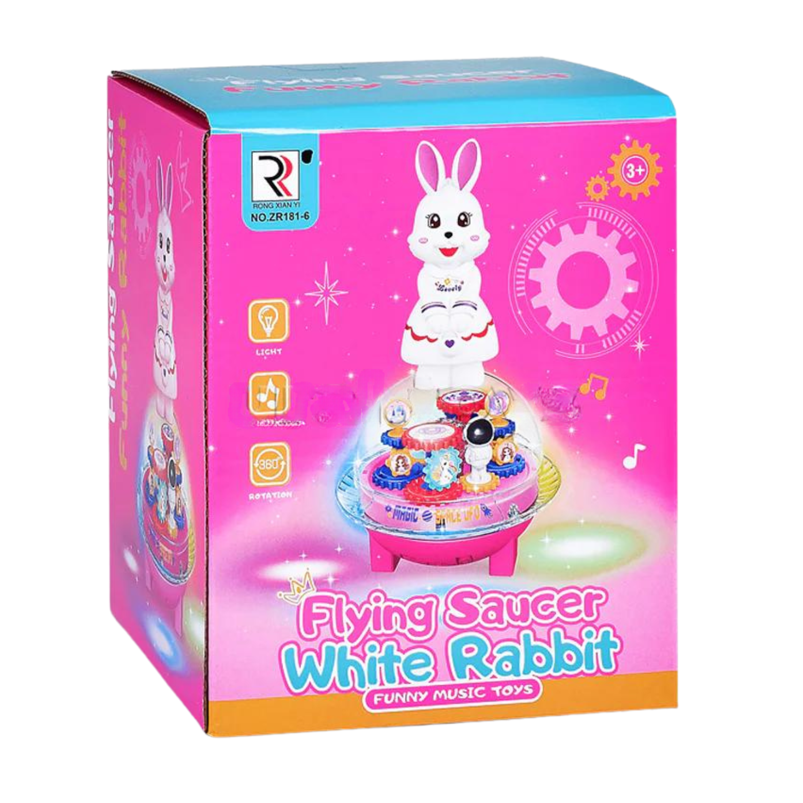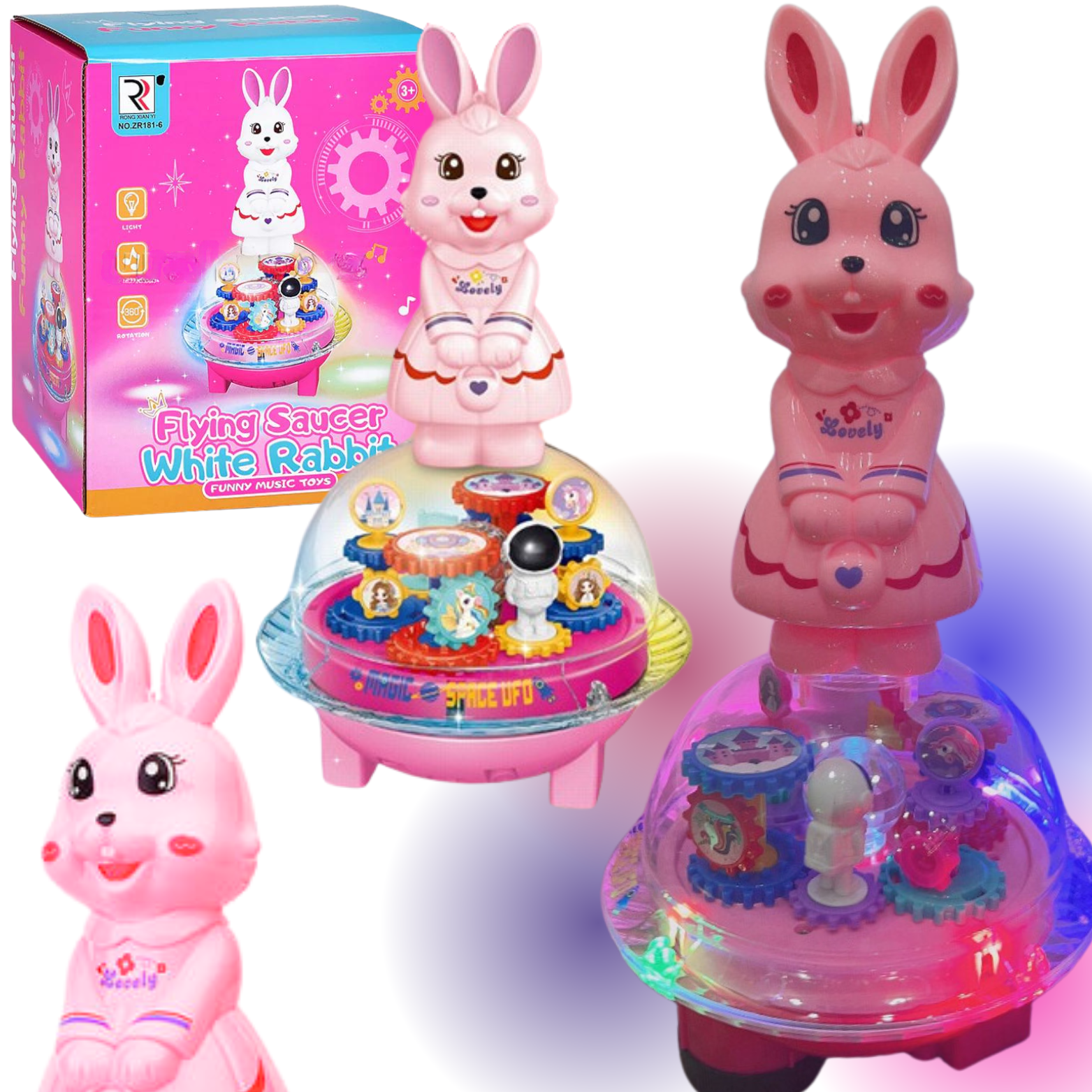 Króliczek na kuli to niezwykła zabawka, która łączy w sobie wiele elementów rozrywki i rozwoju. Zawiera kolorowe światełka, które tworzą magiczną atmosferę, odtwarza wesołe i spokojne melodie, zapewniając dźwiękową ucztę, oraz obraca się o 360° i przemieszcza się, co zapewnia dynamiczną i interaktywną zabawę. Dodatkowo, wewnątrz kuli znajdują się ruchome, kolorowe zębatki, które są ciekawym elementem pomagającym utrzymać koncentrację.