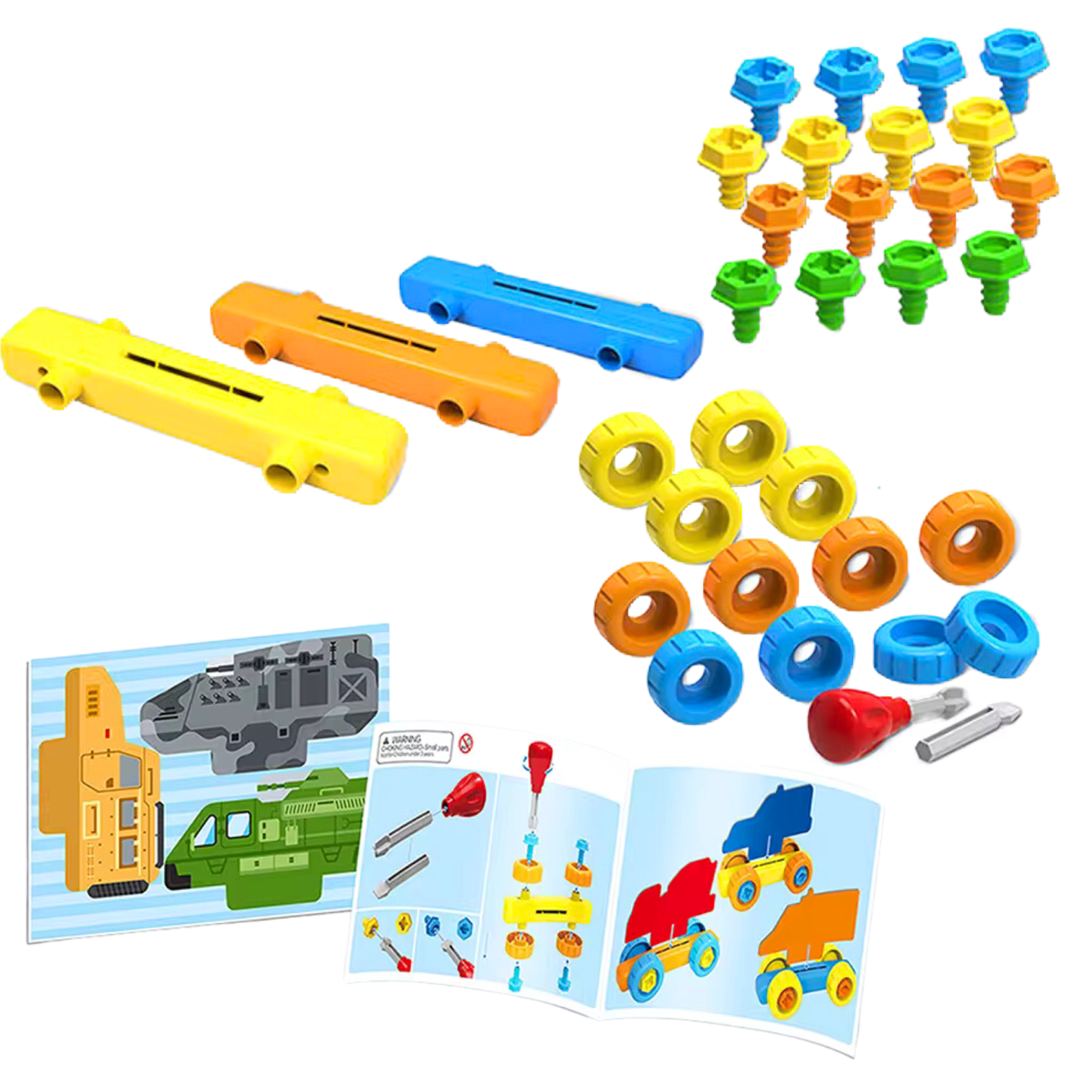 Klocki Konstrukcyjne Montessori Zestaw Budowanie Aut Śrubokręt I Akcesoria