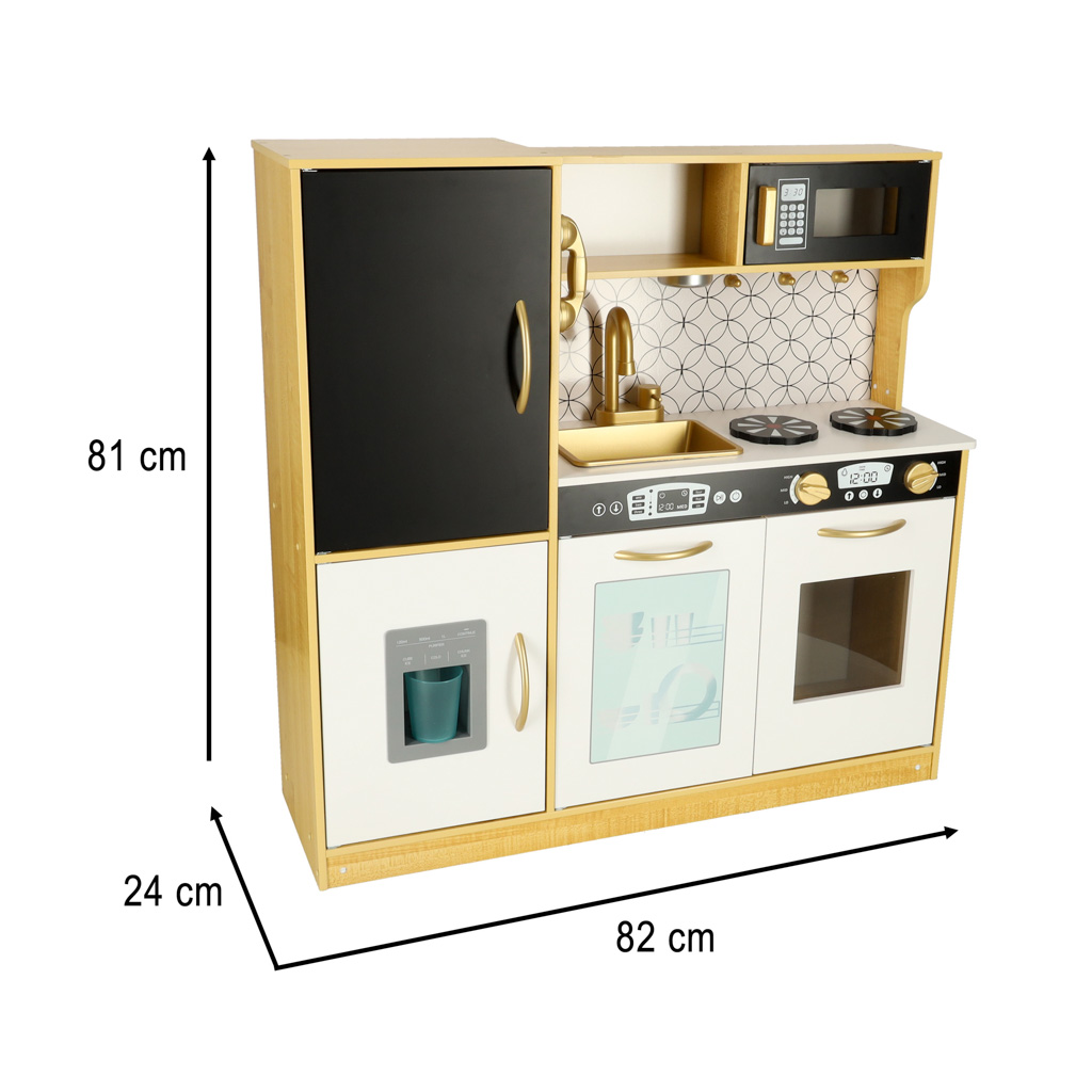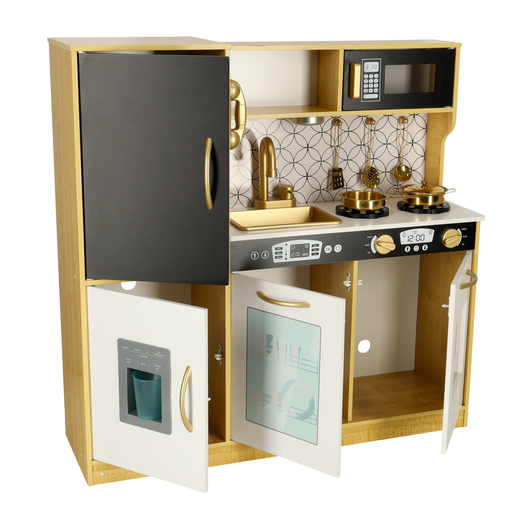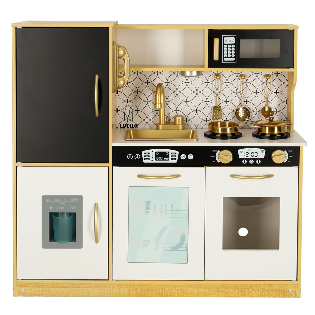 Kuchnia dla dzieci drewniana LULILO ORO z lodówką tablicą kredową złota