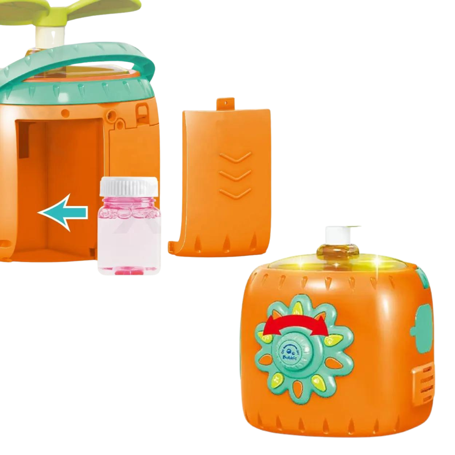 Melodie wydobywające się ze słonecznika są dodatkową atrakcją i umilają dziecięcą zabawę. Poruszający się kwiat ukierunkuje ruch baniek, a bańki szybko się rozprzestrzenią wokół.