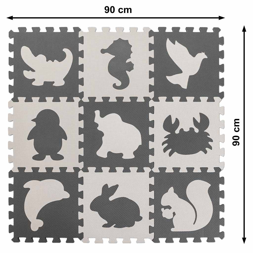MATA EDUKACYJNA PIANKOWA PUZZLE ZWIERZĄTKA SZARA 85 X 85 CM 9