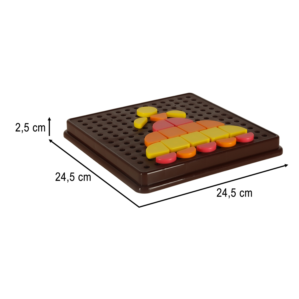 – układanie małych elementów na planszy ćwiczy zręczność palców i koordynację