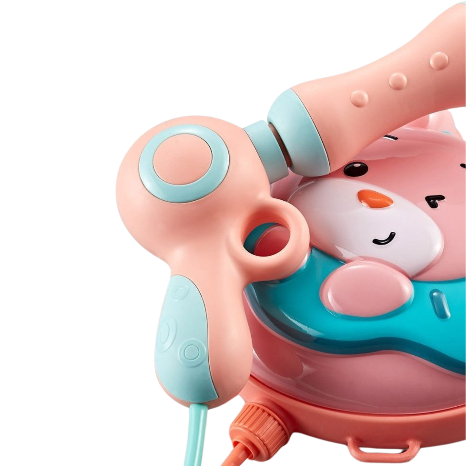 Atrakcyjny design: Uroczy motyw kreskówkowego królika z pączkiem dodaje przyjaznego klimatu całej zabawie. Jasne i żywe kolory, słodka grafika oraz precyzyjne detale sprawiają, że pistolet na wodę stanie się ulubioną zabawką każdego malucha oraz jego niezbędnym towarzyszem podczas upalnych dni.
