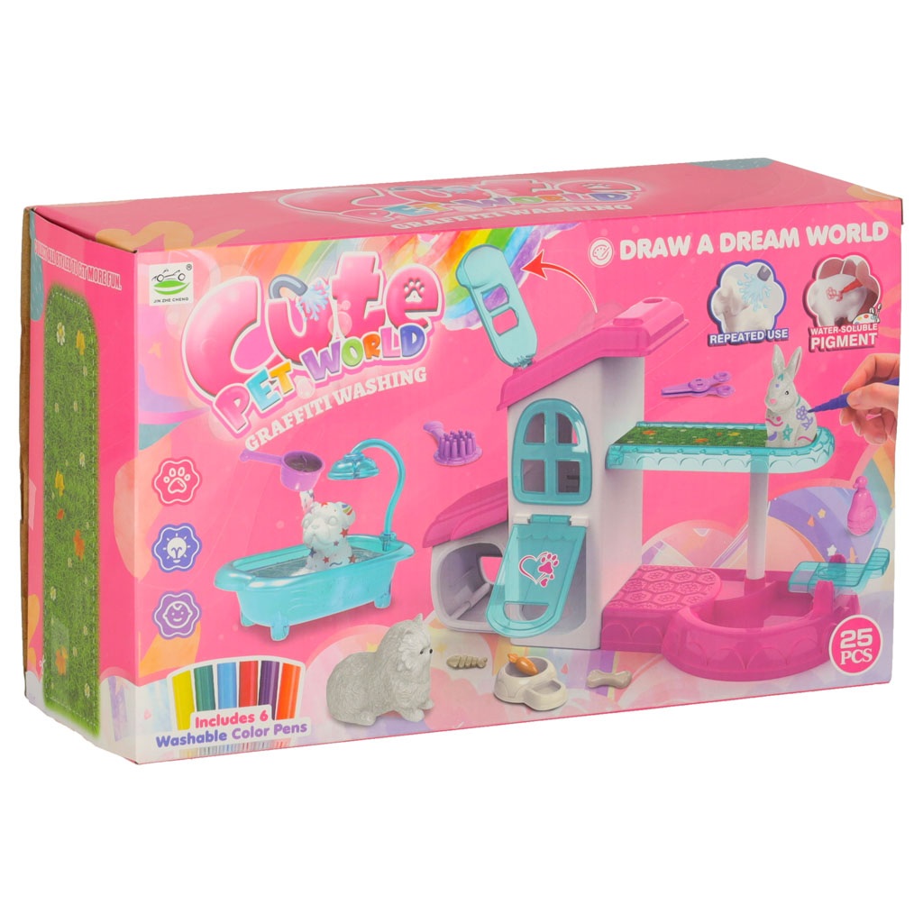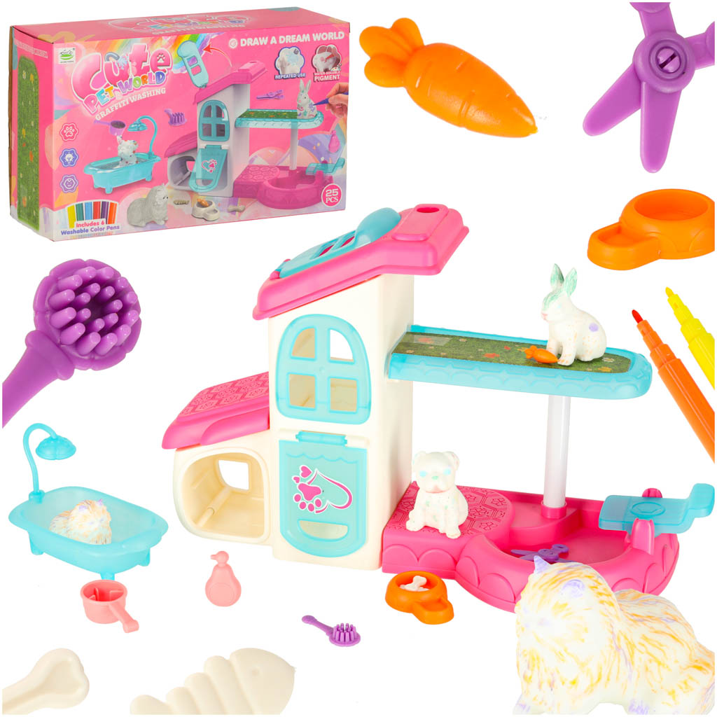 SPA dla zwierząt domek malowanie kąpanie zwierząt mazaki zmywalne akcesoria 26 elementów