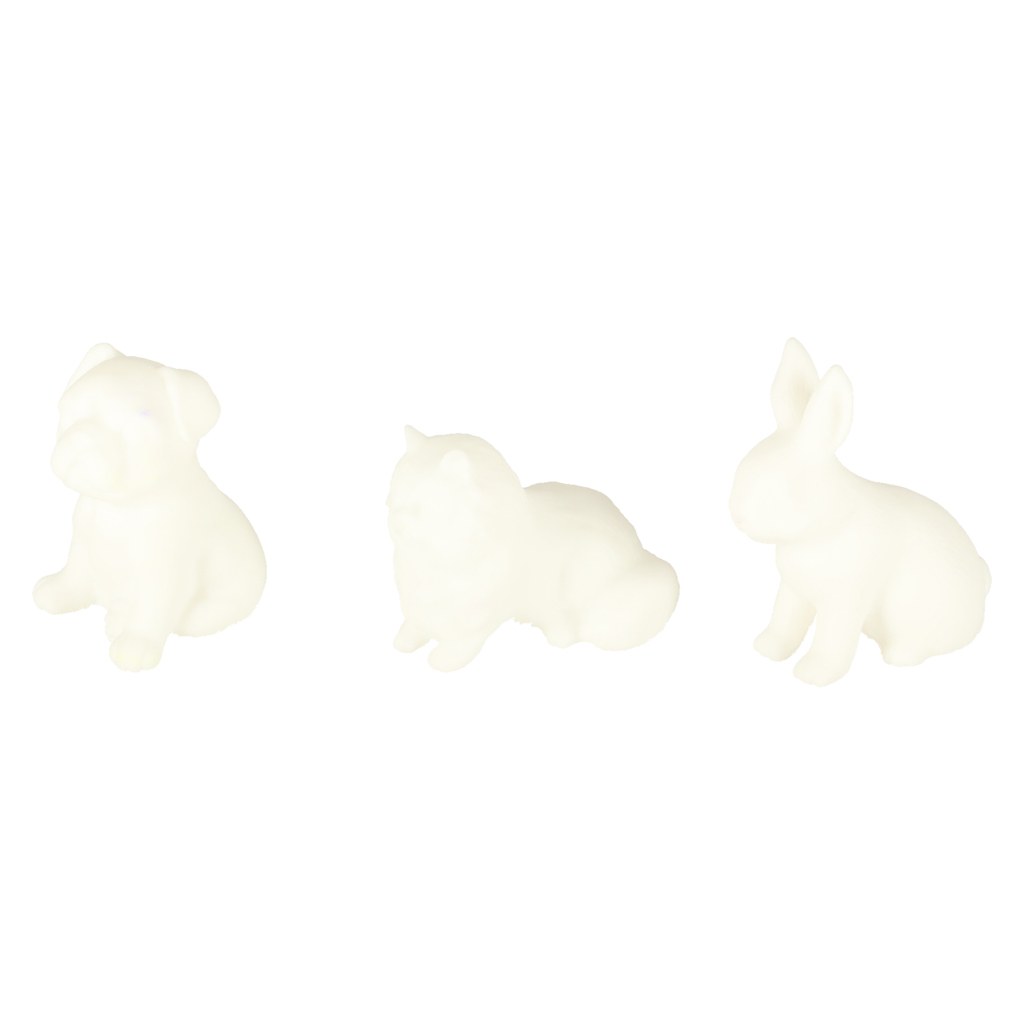 dzieciom. Białe figurki pieska, kotka i króliczka można poddać zabiegom