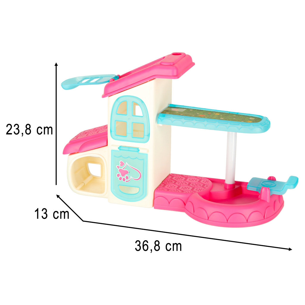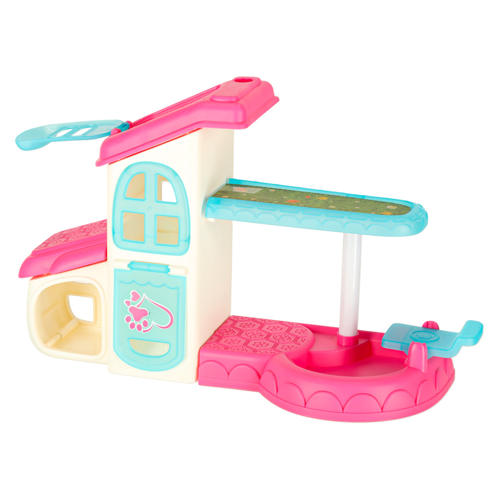 zestawie znajduje się domek z otwieraną przednią i górną klapką z basenem i