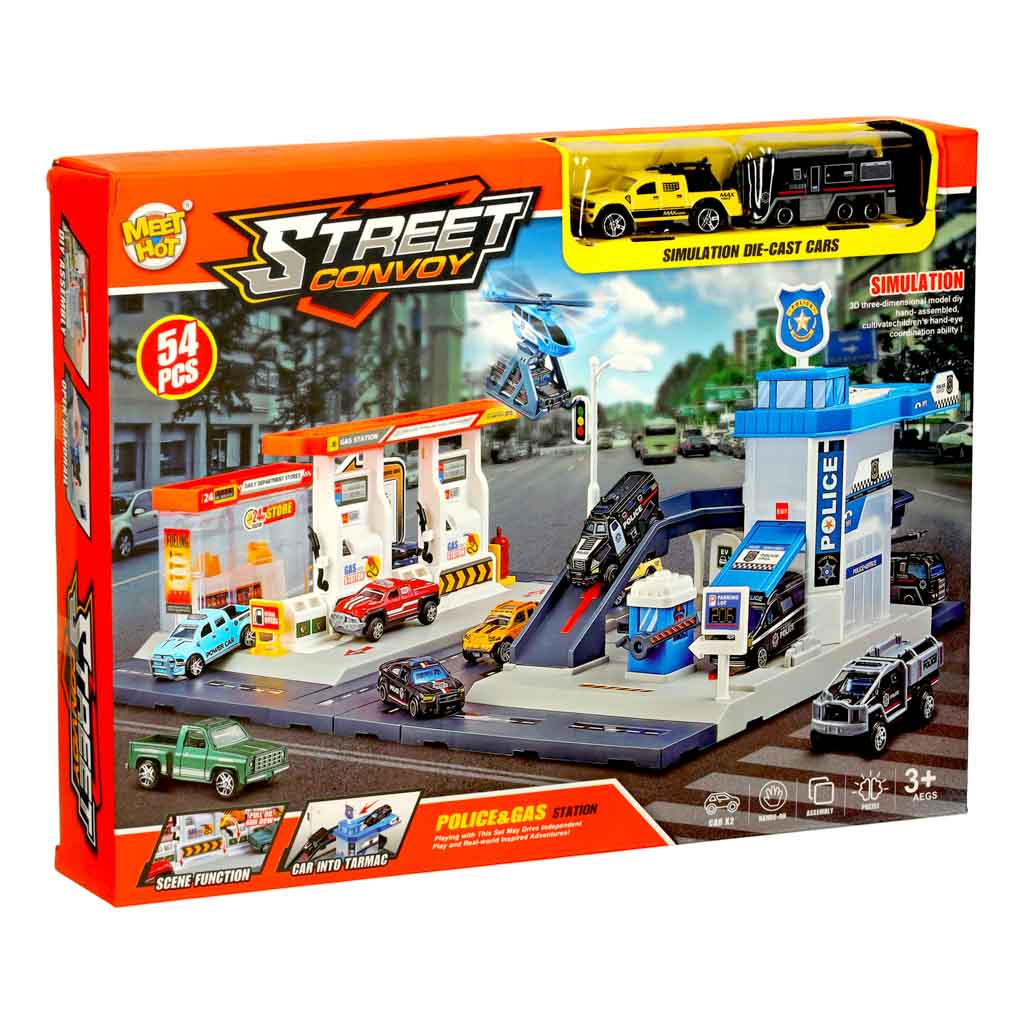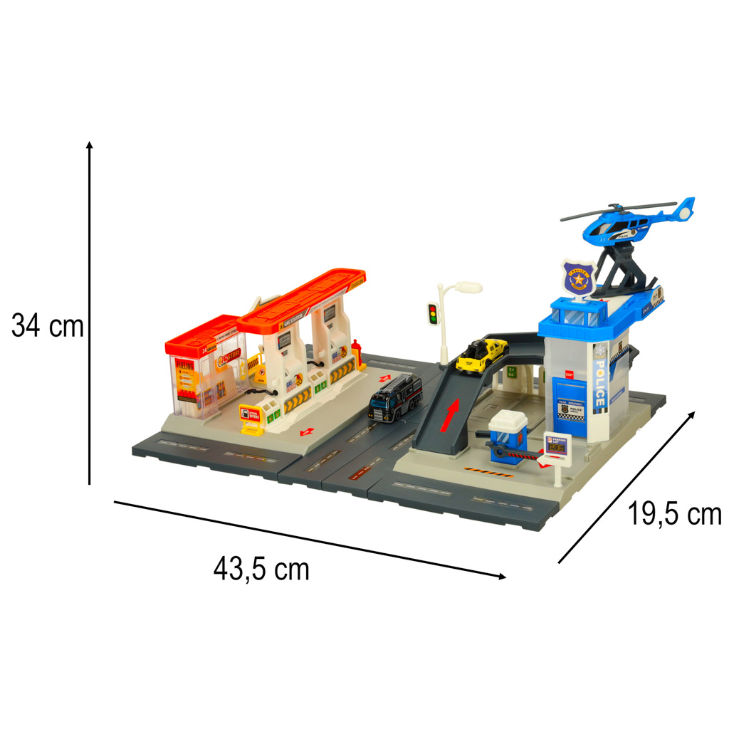 skład zestawu wchodzi stacja benzynowa, parking policyjny oraz dwa