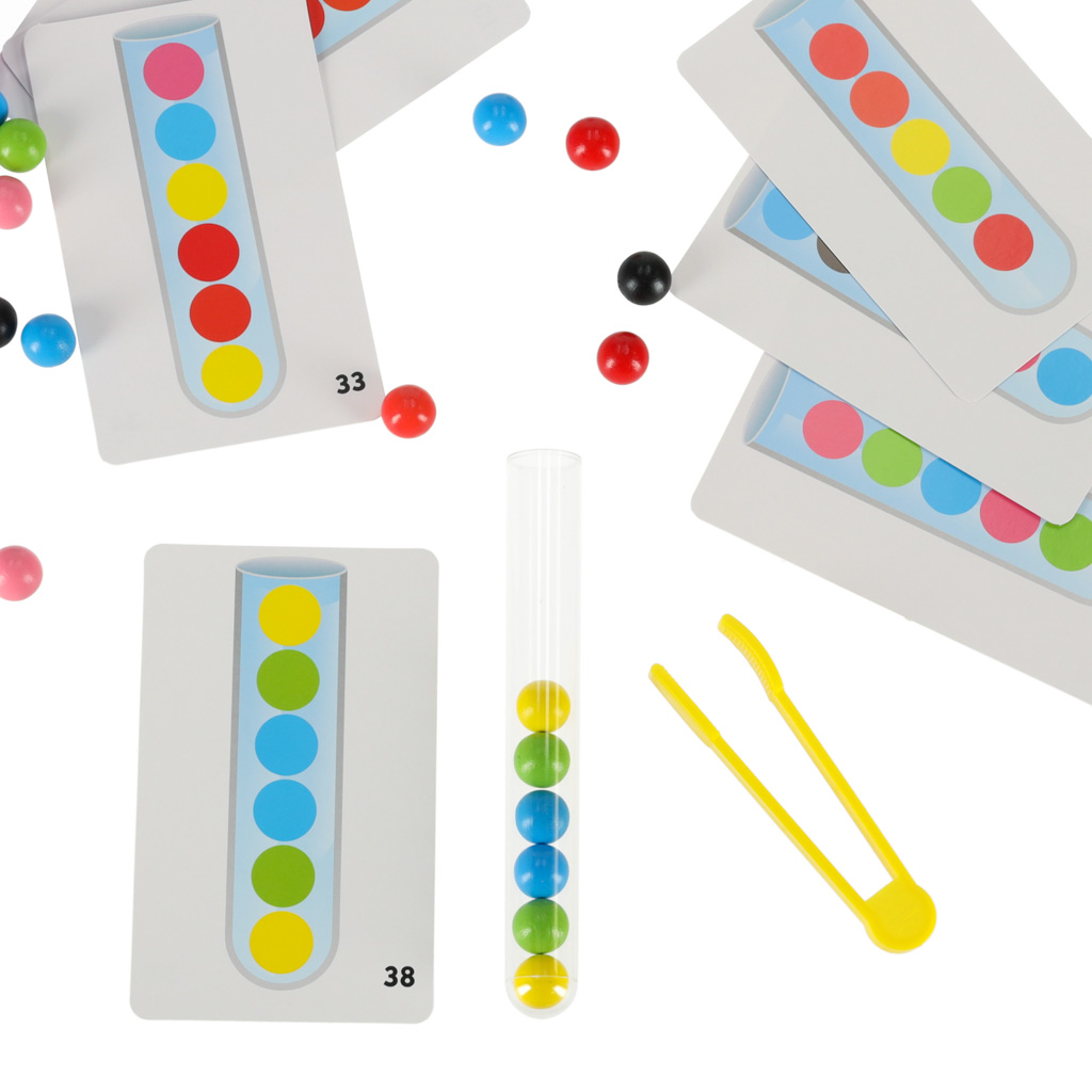 celem zabawy jest sortowanie kuleczek do odpowiednich próbówek! Maluch