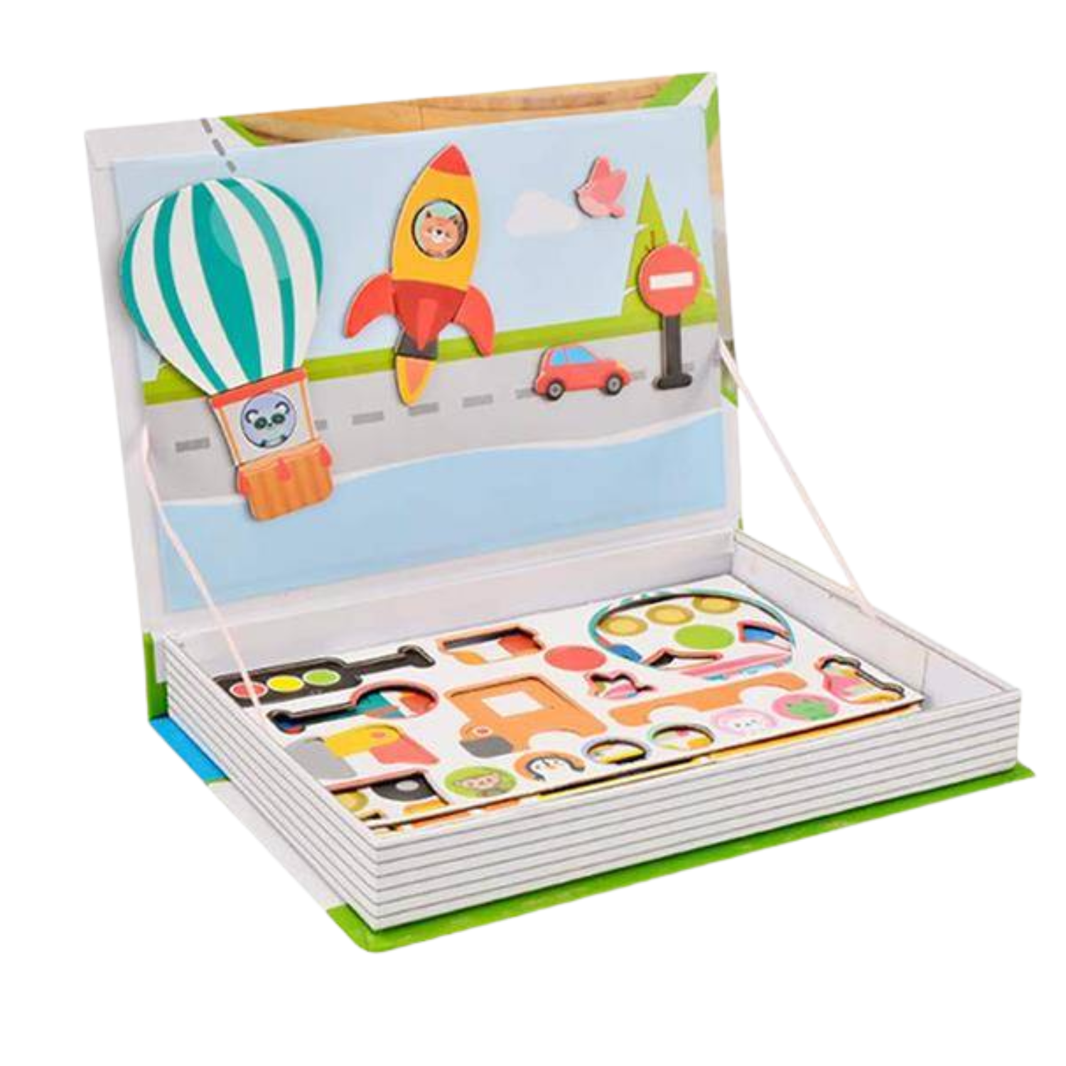 Wyobraź sobie ten błysk w oczach Twojego dziecka, gdy otwiera książeczkę i zanurza się w świecie pojazdów! Tworzy własne historie, wybierając spośród 8 kart i dopasowując 57 magnesów – od samochodów po znaki drogowe. Z każdym ruchem rozwija swoją wyobraźnię, angażując się w zabawę, która nigdy się nie kończy. A po zakończonej przygodzie wszystkie elementy magicznie wracają na swoje miejsce w praktycznym opakowaniu!