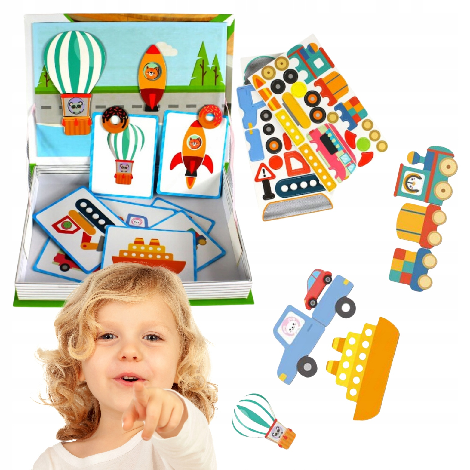 Układanka Magnetyczna Pojazdy Książeczka Puzzle Edukacyjna dla Dzieci 3+