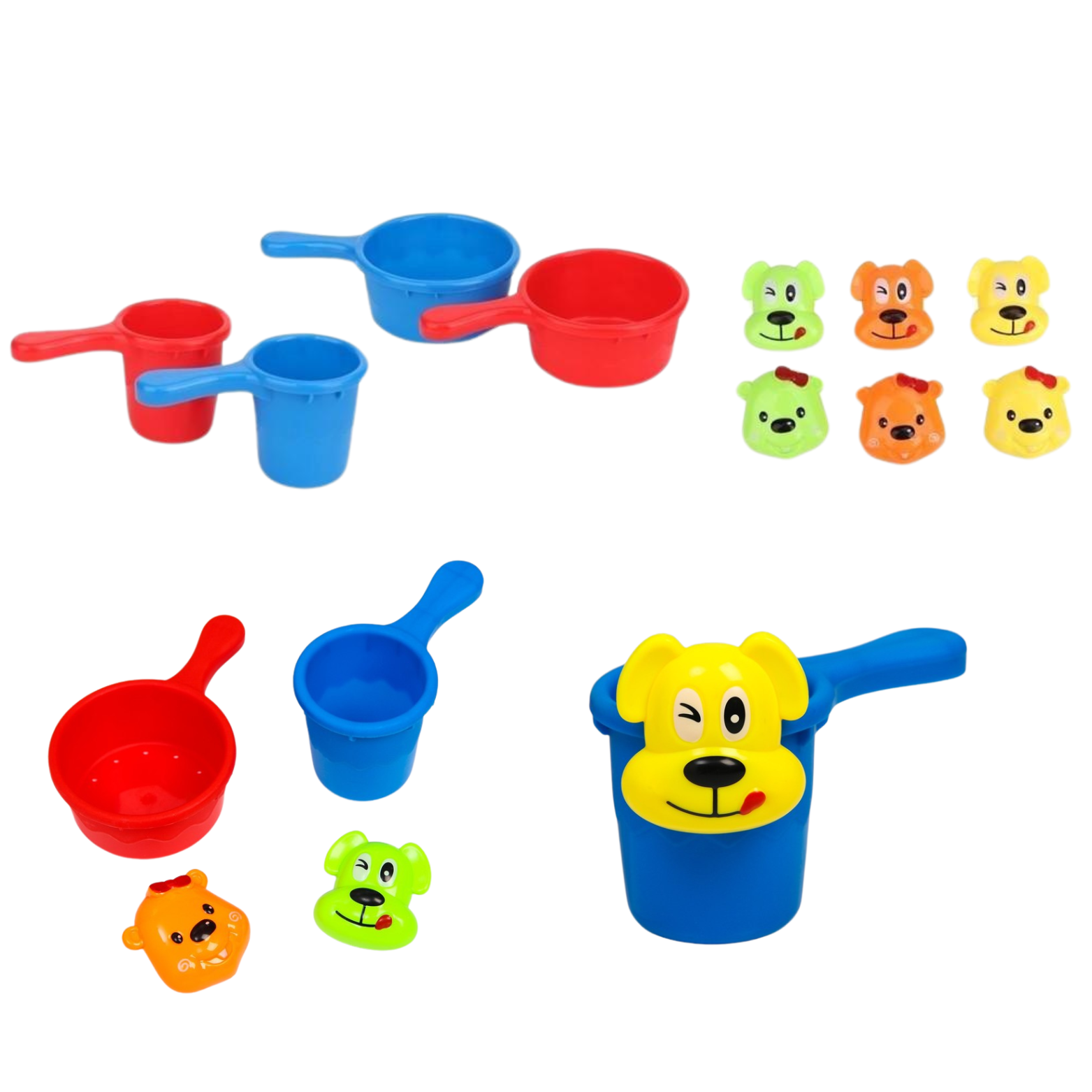 Oprócz głównej zabawki, zestaw zawiera chochle z sitkiem, umożliwiające łatwe napełnienie zabawki z wodą. Dodatkowe elementy zwiększają atrakcyjność zabawy i pozwalają na bardziej zróżnicowane doświadczenia wodne.