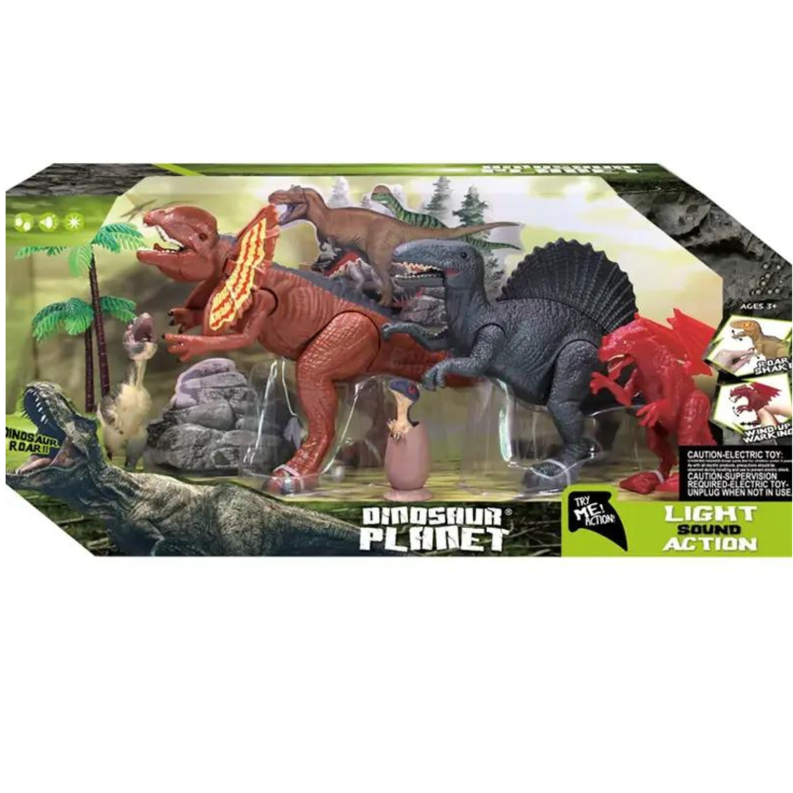ZESTAW 4 FIGUREK DINOZAURÓW 2 DRZEWKA EFEKTY DŹWIĘKOWE I ŚWIETLNE