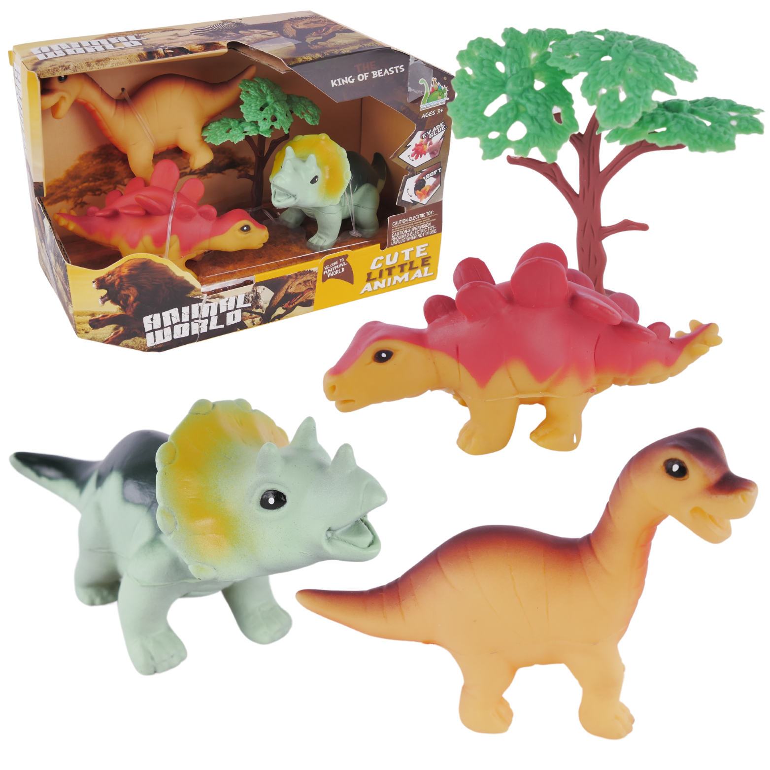 ZESTAW DINOZAURÓW TRZY FIGURKI RÓŻNE RODZAJE DRZEWKO ZESTAW DLA DZIECI