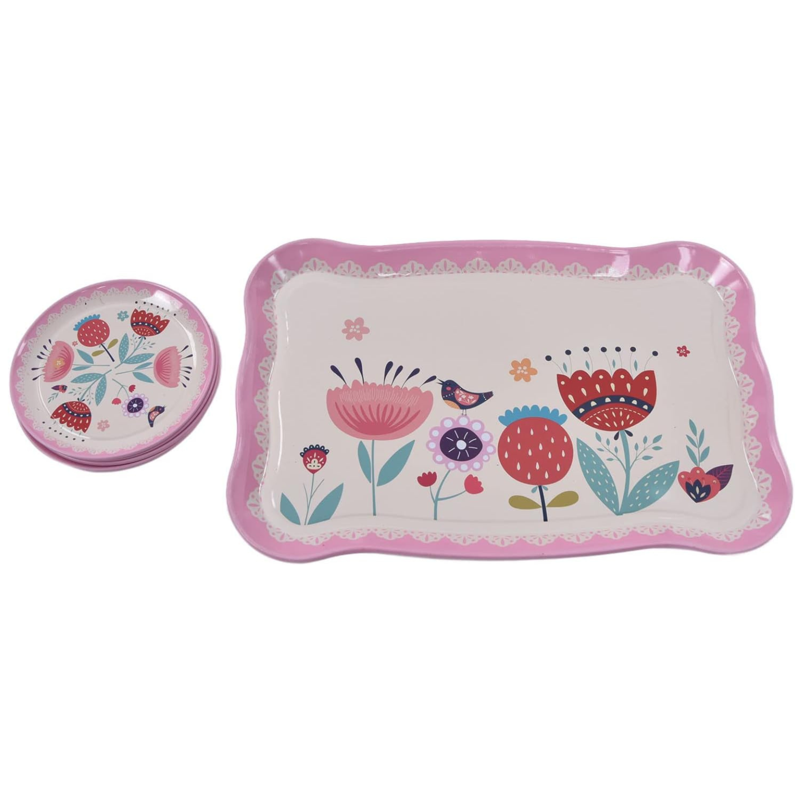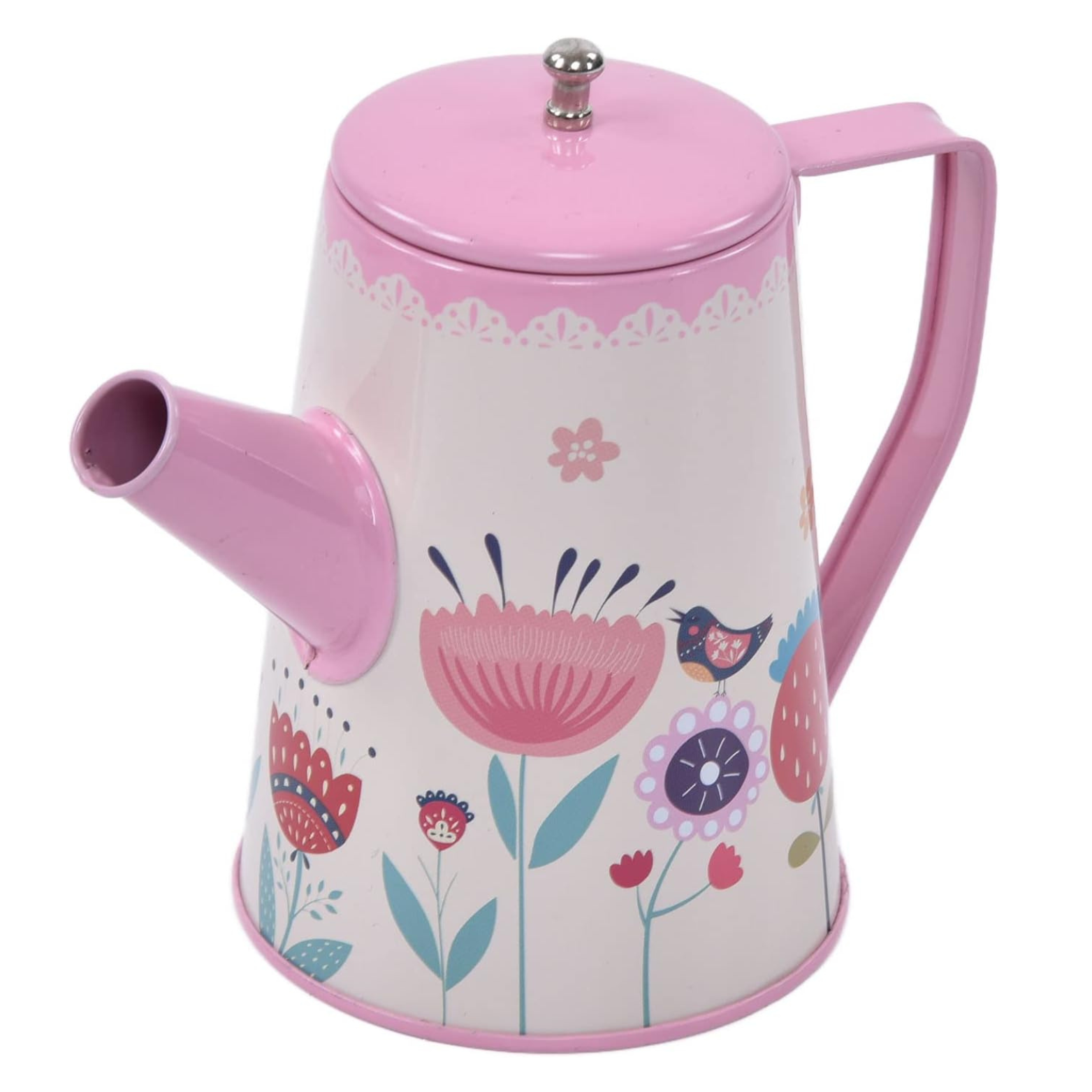 Kolorowe wzory kwiatowe nadają zestawowi elegancji i urok, co sprawia, że jest niezwykle atrakcyjny dla dzieci. Ten zestaw jest bogaty w elementy, które umożliwiają dzieciom organizację przyjęć. Znajduje się tu między innymi pudełko na herbatę, filiżanki, dzbanek, talerzyki czy tacka.