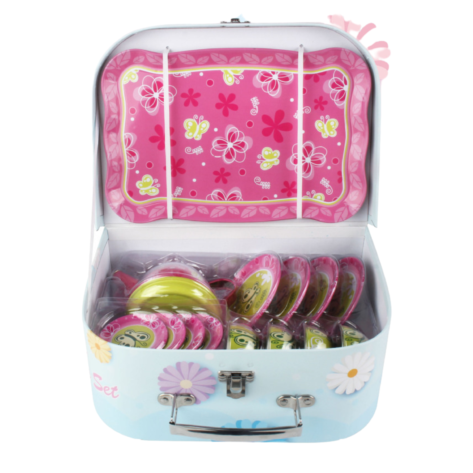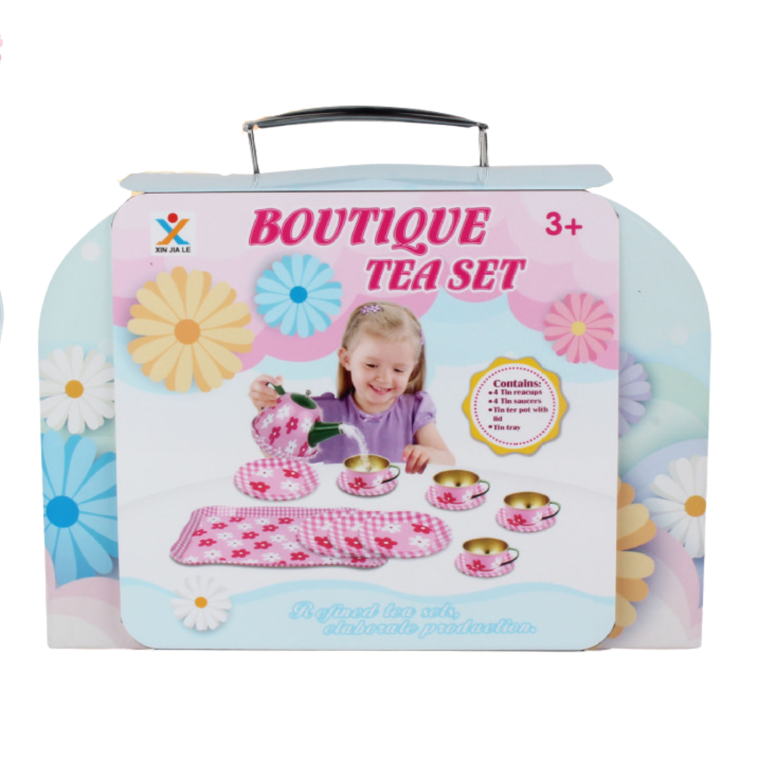 Zestaw jest wyposażony w uroczą tackę, na której można prezentować przygotowane napoje i przekąski. Tacka dodaje elegancji i autentyczności zabawie, a jednocześnie pomaga dzieciom w organizacji ich herbatkowych spotkań.