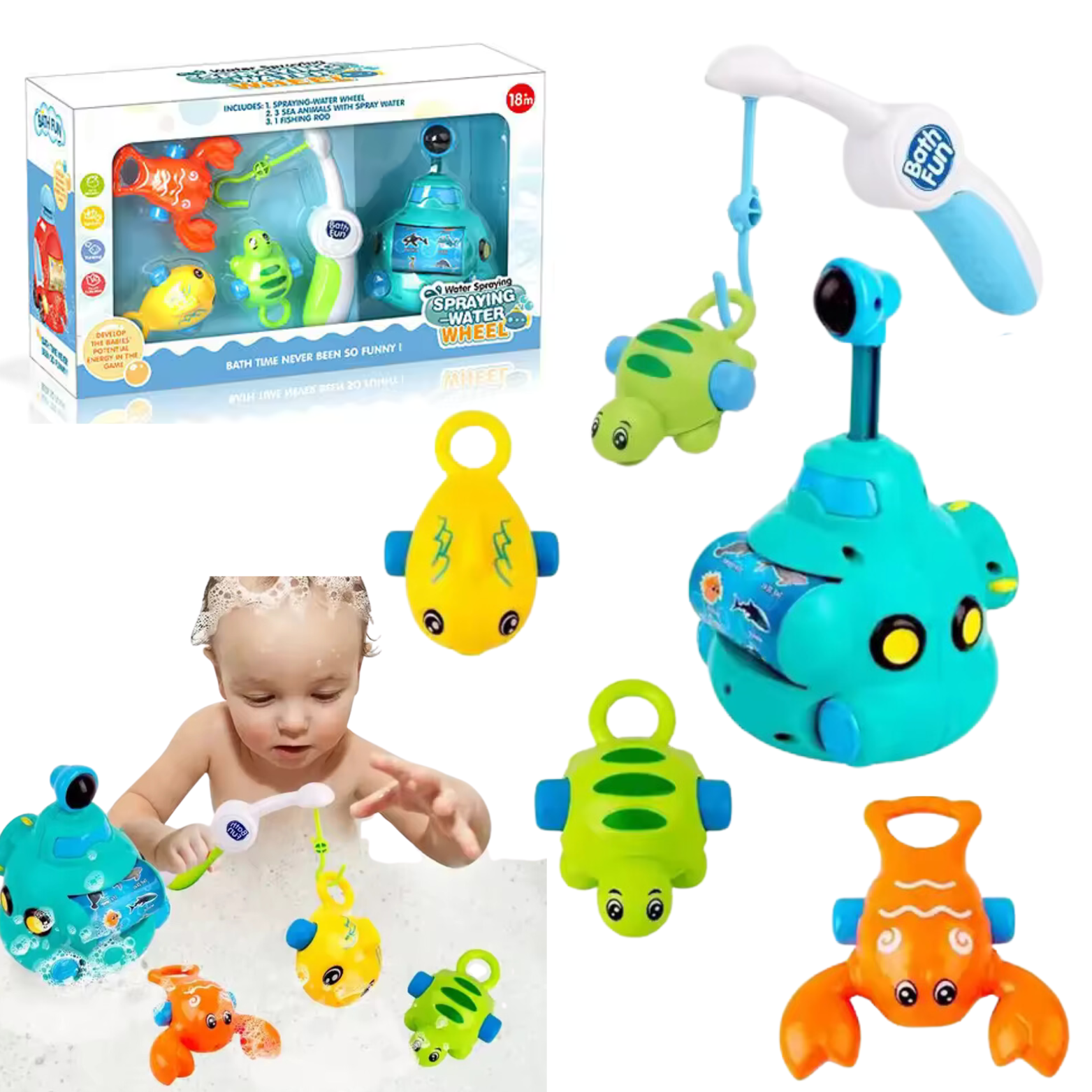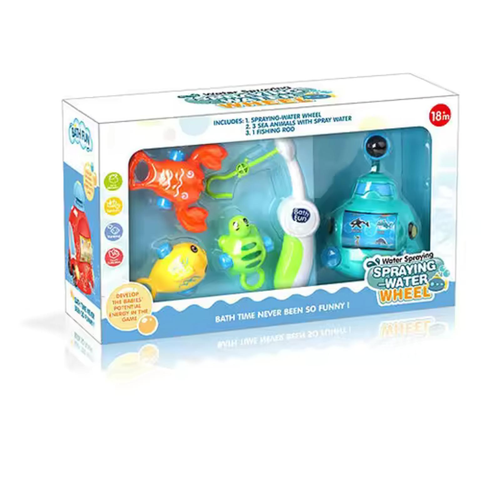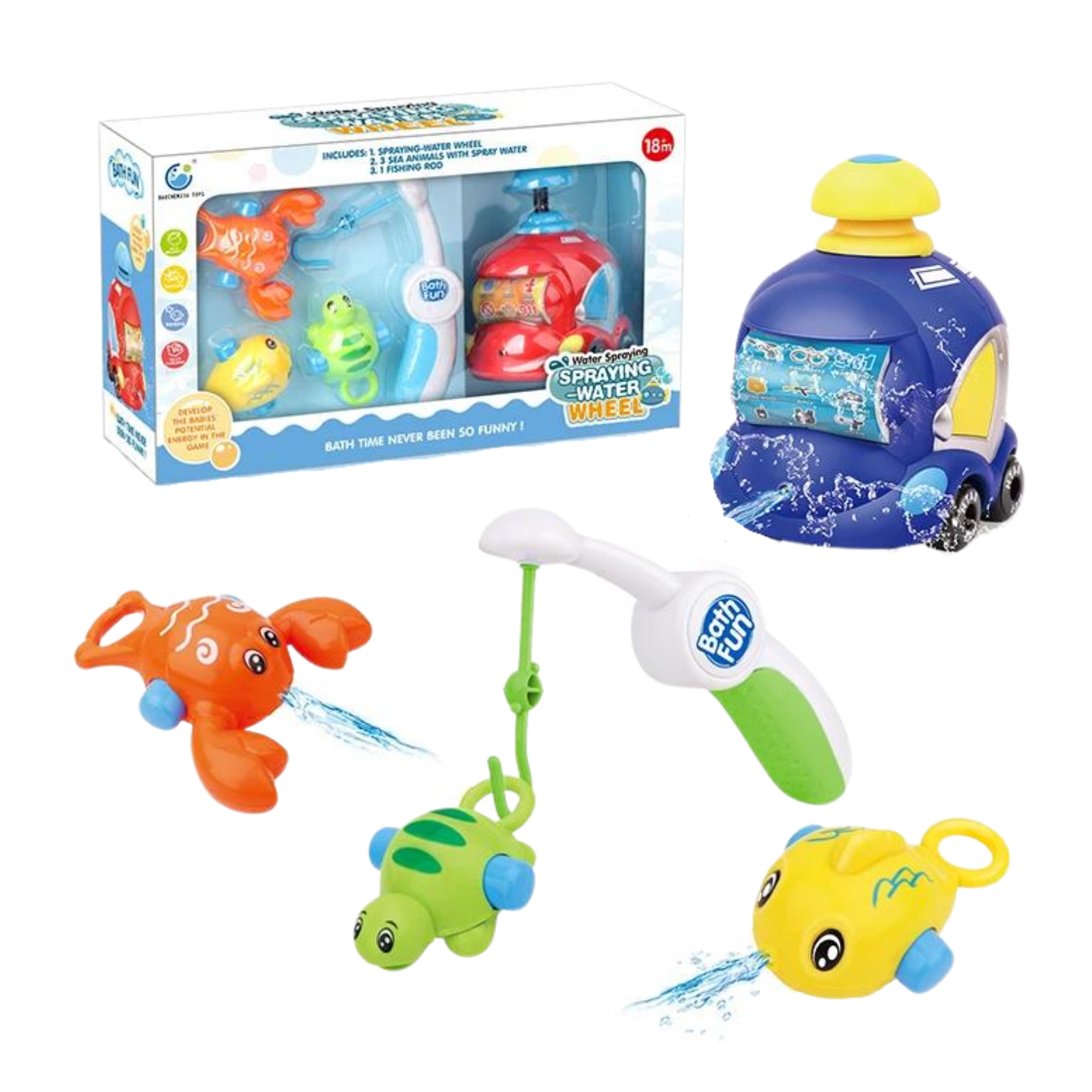 Różnorodność Zabawek: Zestaw zawiera różnorodne zabawki, takie jak rybka, żółw, krab i łódź podwodna, które zachęcają dzieci do różnorodnych form zabawy podczas kąpieli. Oprócz tych elementów do zestawu jest dołączona wędka, dzięki, której dziecko będzie miało możliwość łowienia zwierzątek!