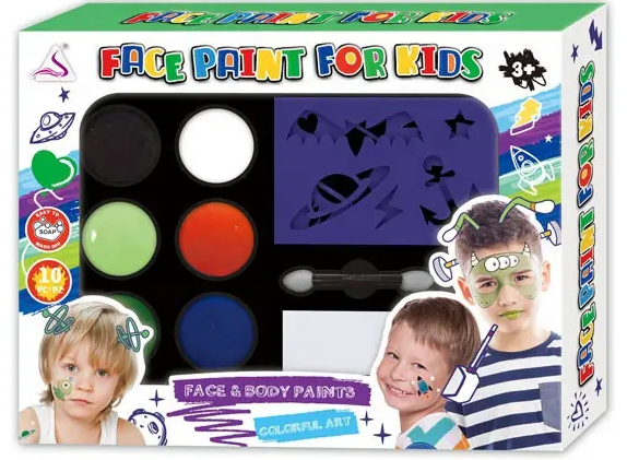 Łatwe w użyciu: Ten zestaw został zaprojektowany tak, aby był łatwy w użyciu dla dzieci. Farby są bezpieczne dla skóry i można je łatwo nakładać za pomocą pędzelka .