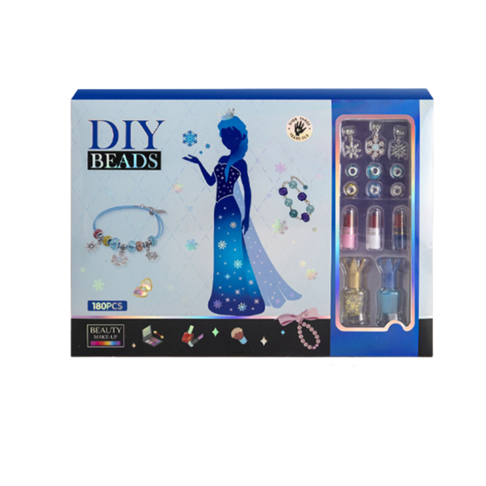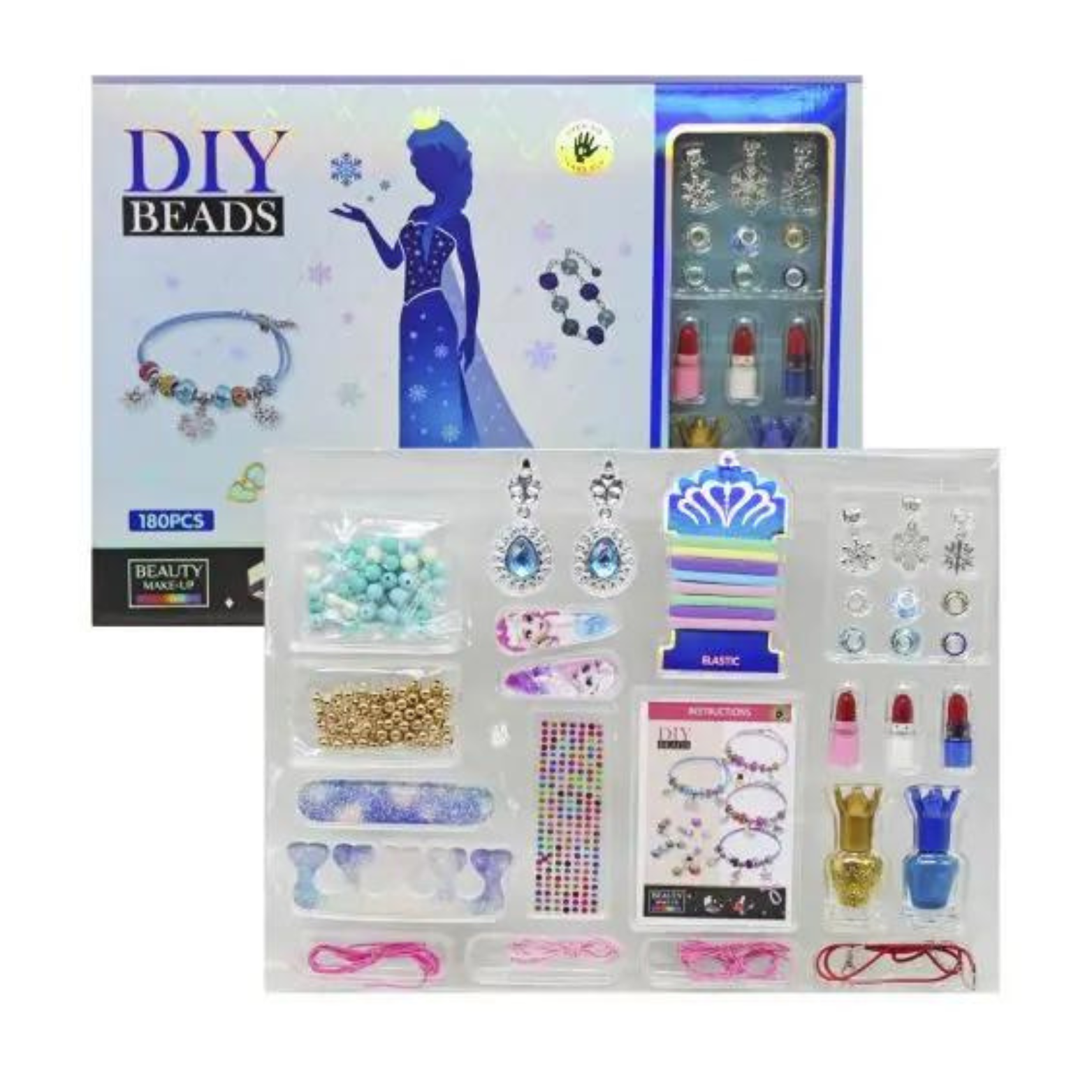 ZESTAW DO ROBIENIA BIŻUTERII BRANSOLETEK DIY KORALIKI CHARMS MAKEUP LAKIERY
