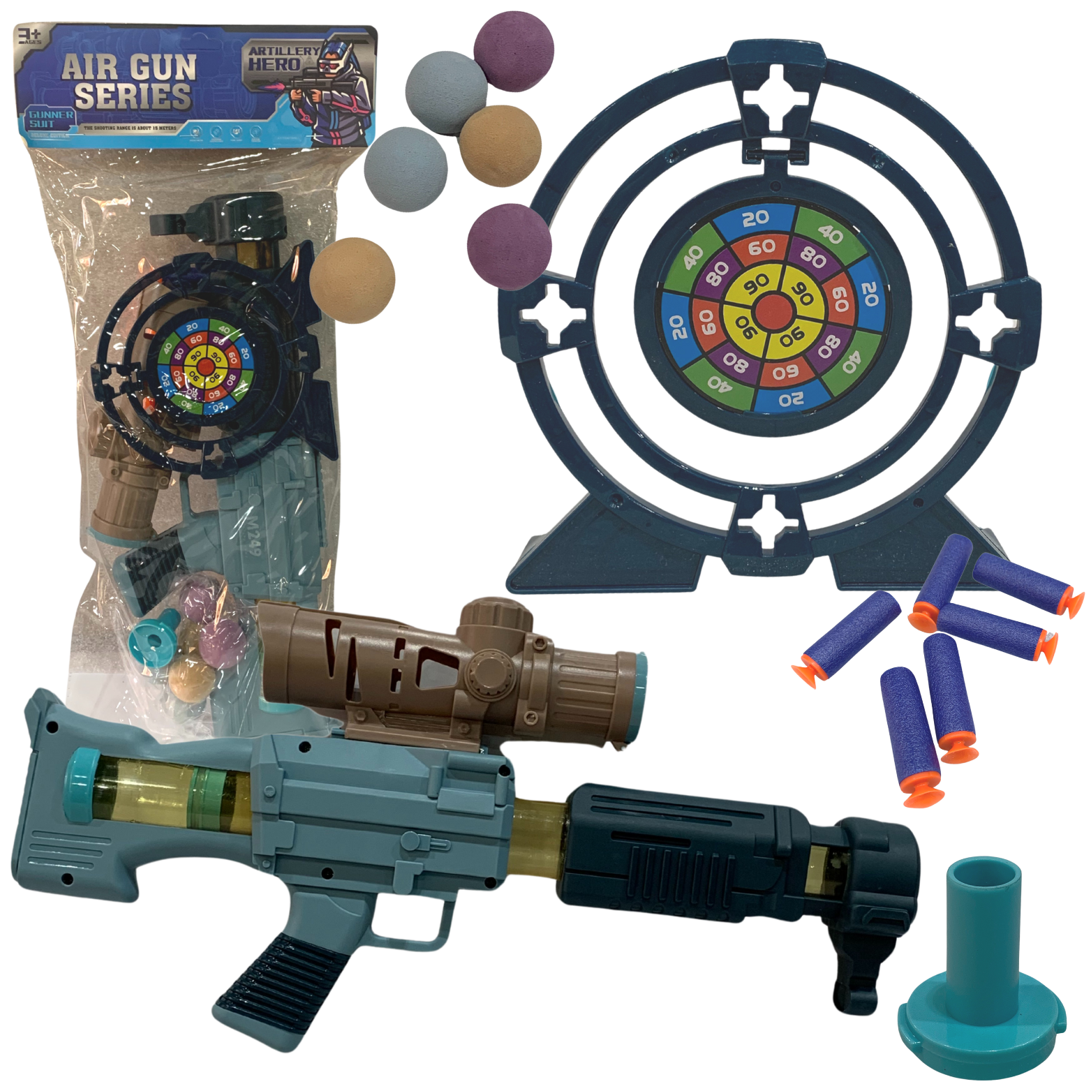 ZESTAW DO STRZELANIA PISTOLET TARCZA PIŁECZKI STRZAŁKI Z PRZYSSAWKI
