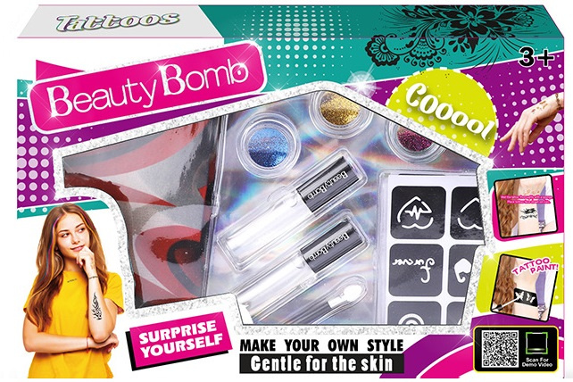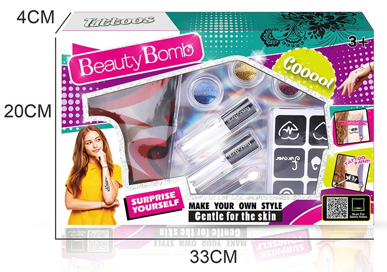 Zestaw kolorowych, brokatowych tatuaży to wspaniała atrakcja na rodzinnych przyjęciach, festynach, a także do codziennej zabawy! Oferowany zestaw jest w pełni bezpieczny! Nie zawiera toksycznych substancji! Jeżeli wzór już się znudzi możemy z łatwością usunąć go za pomocą wody i mydła! Tatuaże możesz ozdobić brokatem, by zachwycały przyjaciół i rodzinę. Baw się, twórz, kreuj swoją osobowość!