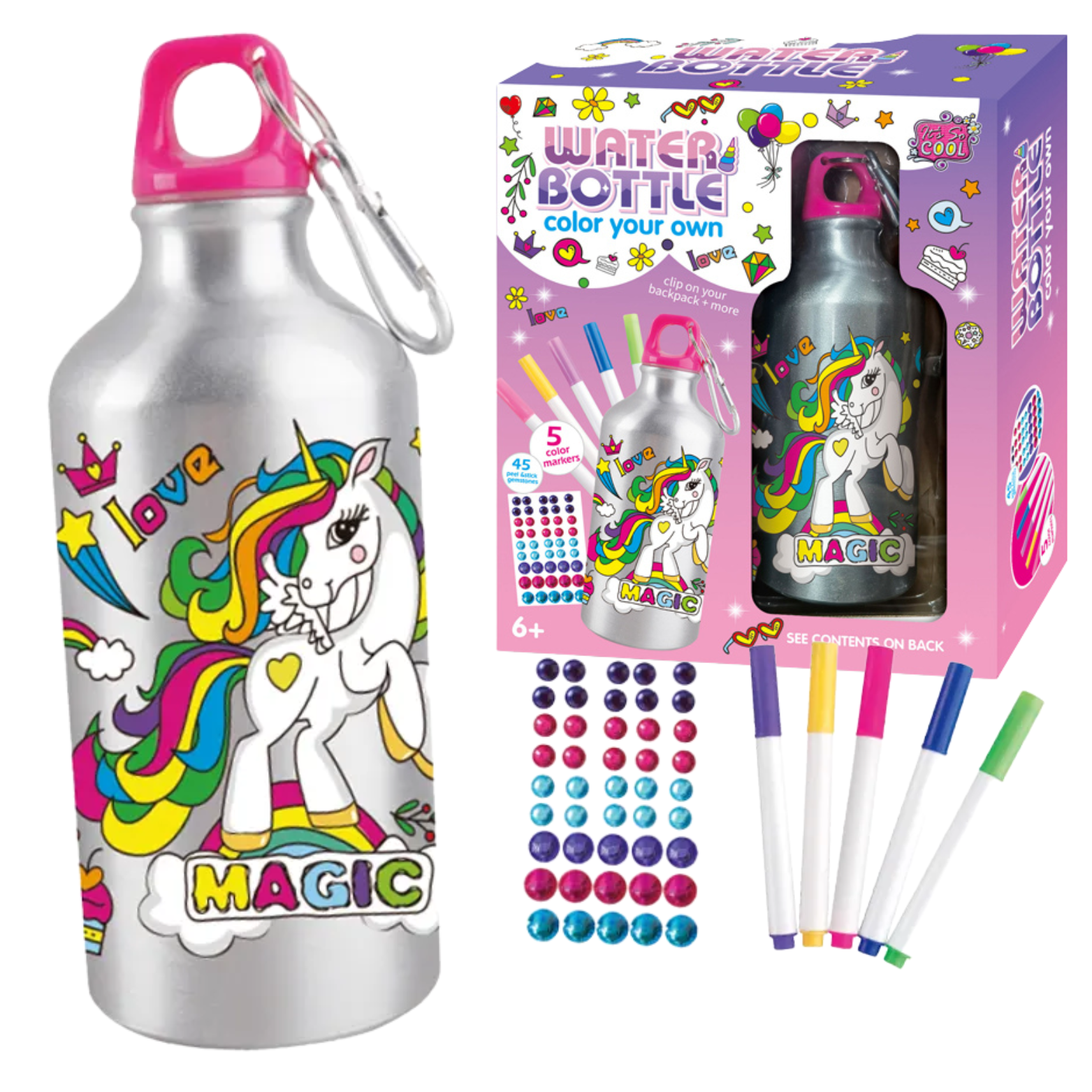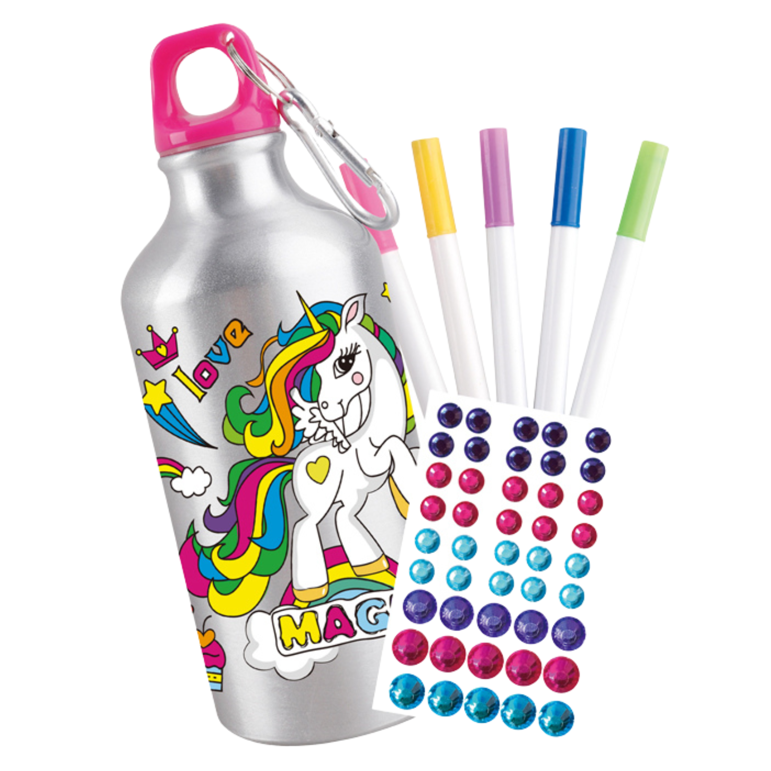 - akcesoria do ozdabiania: Zestaw zawiera akcesoria, takie jak kolorowe pisaki i naklejki z diamentami, niezbędne do tworzenia indywidualnych wzorów na bidonie. Dzięki nim, dzieci mogą wyrazić swoją kreatywność i stworzyć unikalną butelkę, którą z dumą będą nosić,