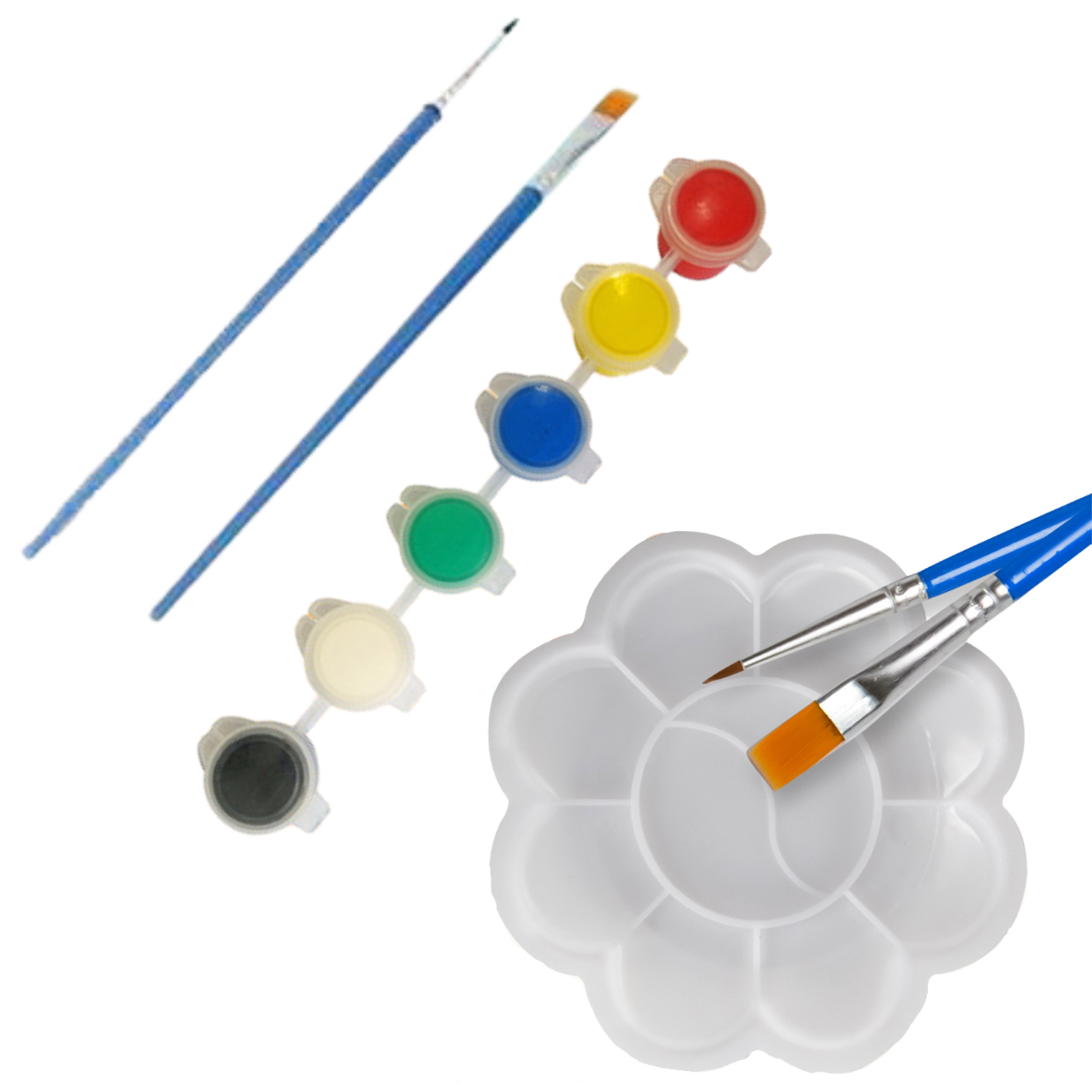 W zestawie znajduje się 6 farb, co pozwoli na tworzenie bogatych i zróżnicowanych projektów. Dodatkowo, 2 pędzle o różnych rozmiarach.