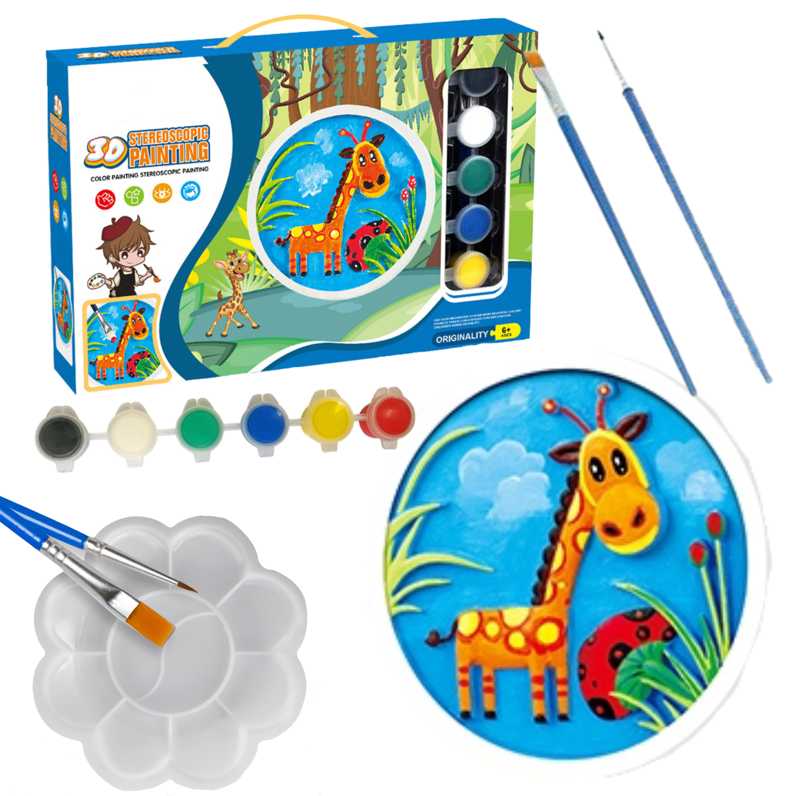 Płótno ceramiczne to unikatowa płaszczyzna do malowania, która dodaje trzeciego wymiaru dziełom. Ten konkretny zestaw posiada wzór z żyrafą, co sprawia, że praca będzie jeszcze bardziej wyjątkowa.