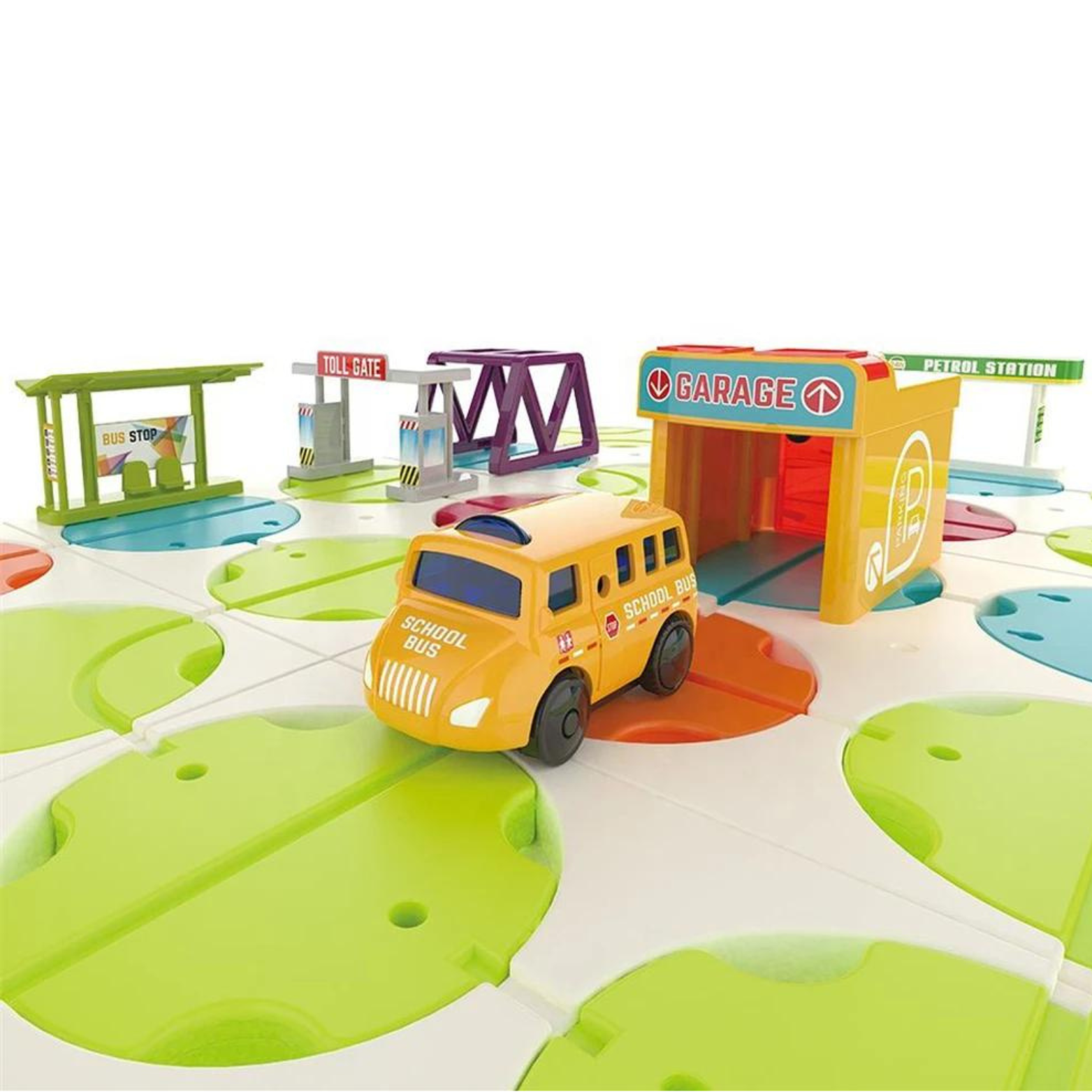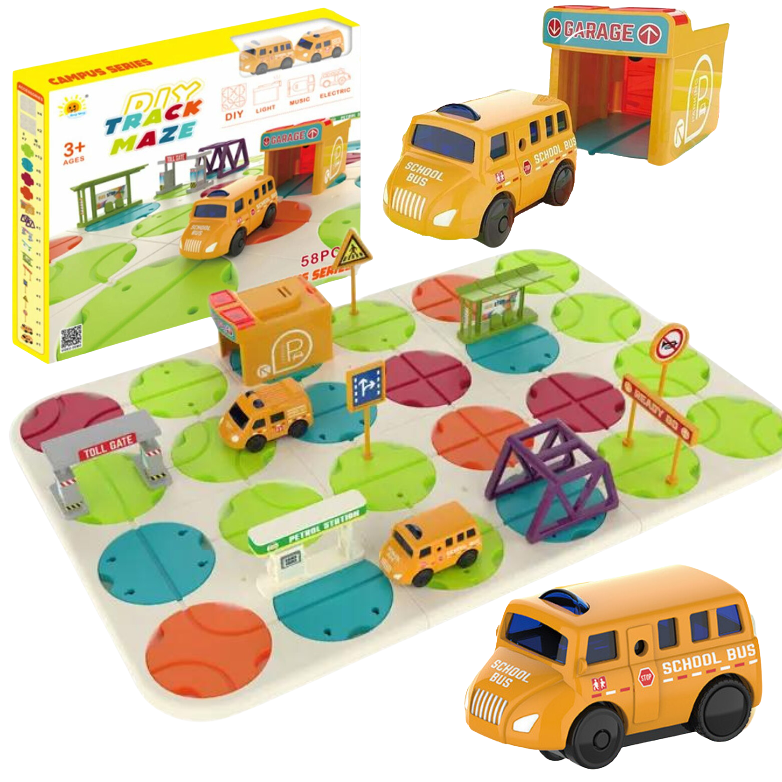 Zestaw Labirynt Drogowy Budowanie Trasy Autobus Szkolny Światło Dźwięk