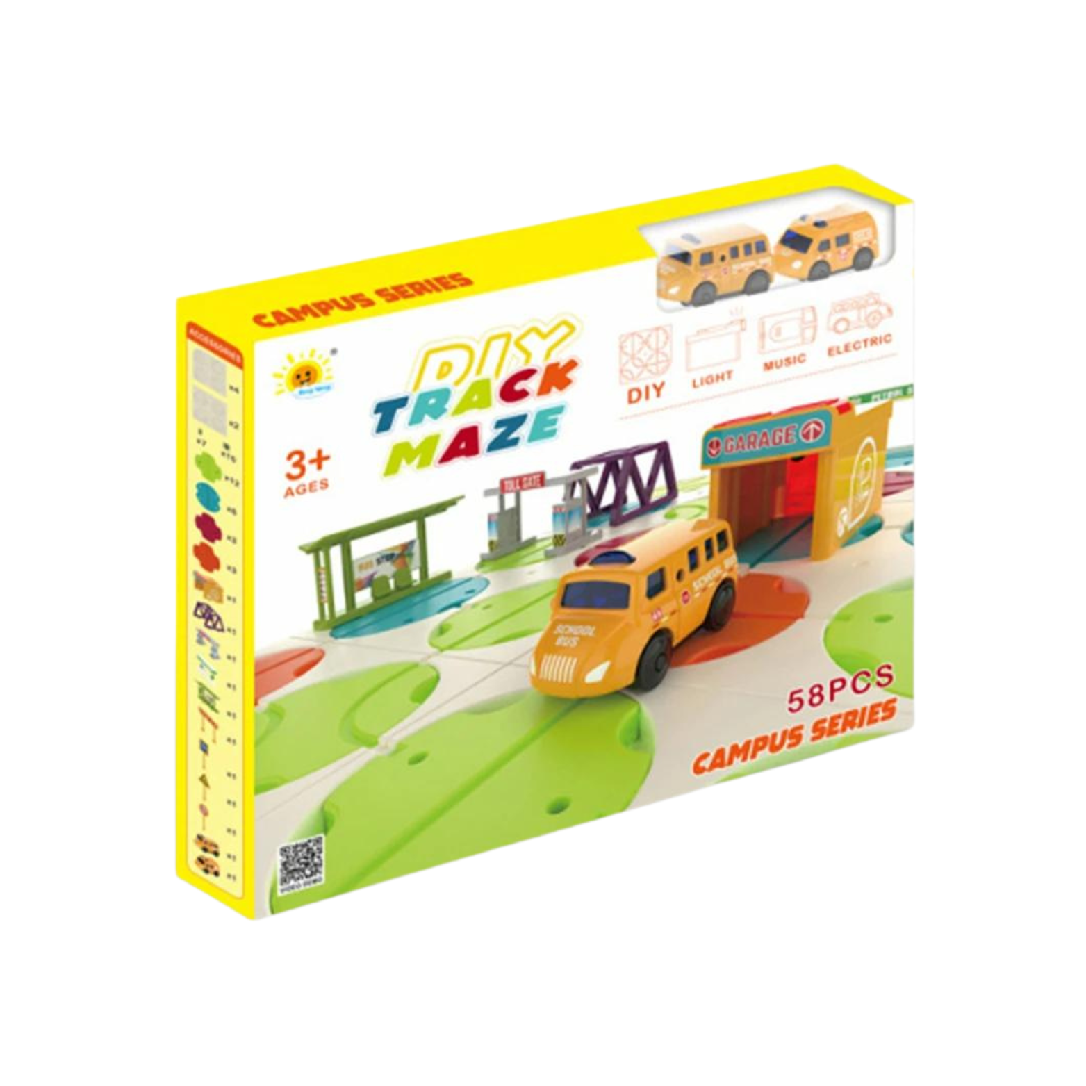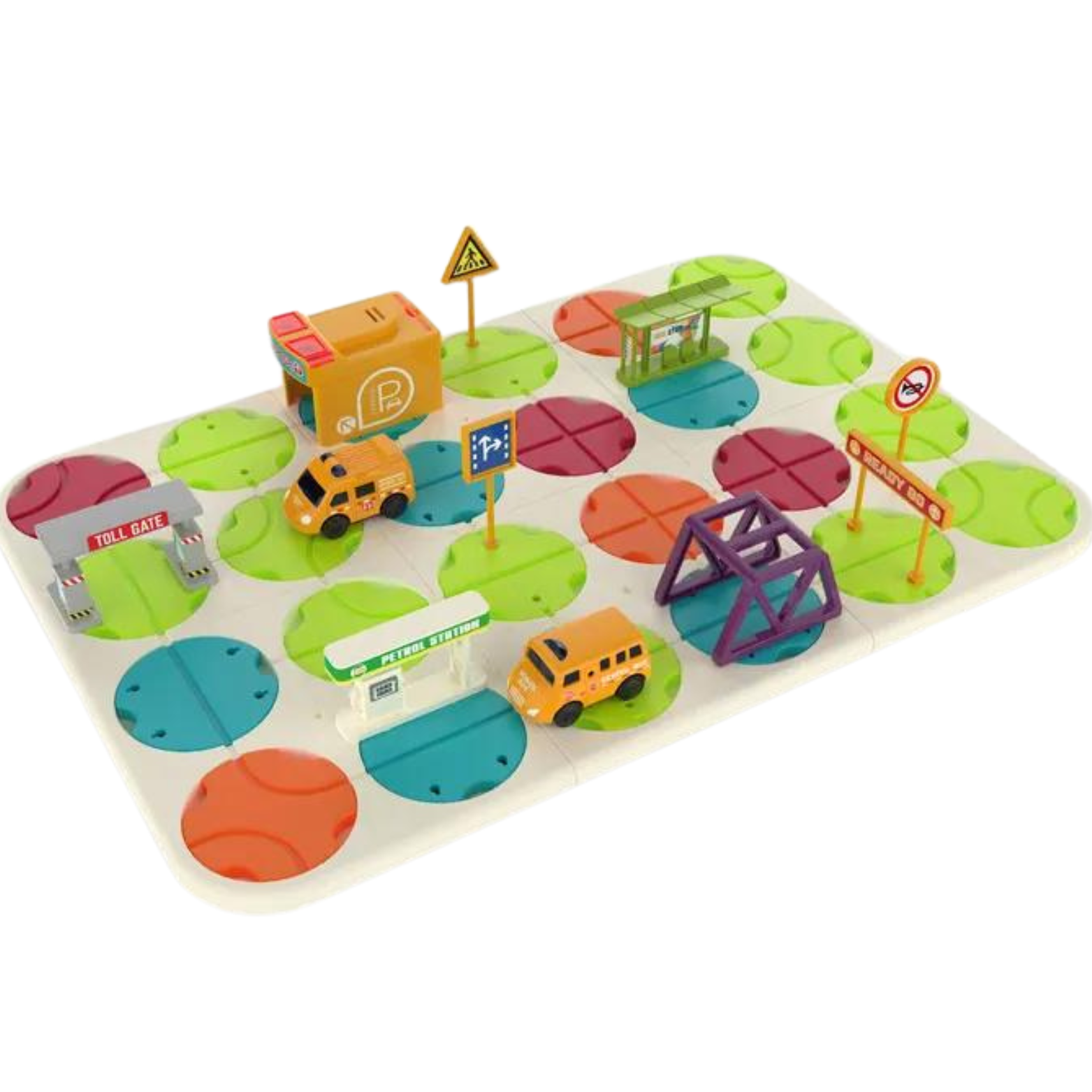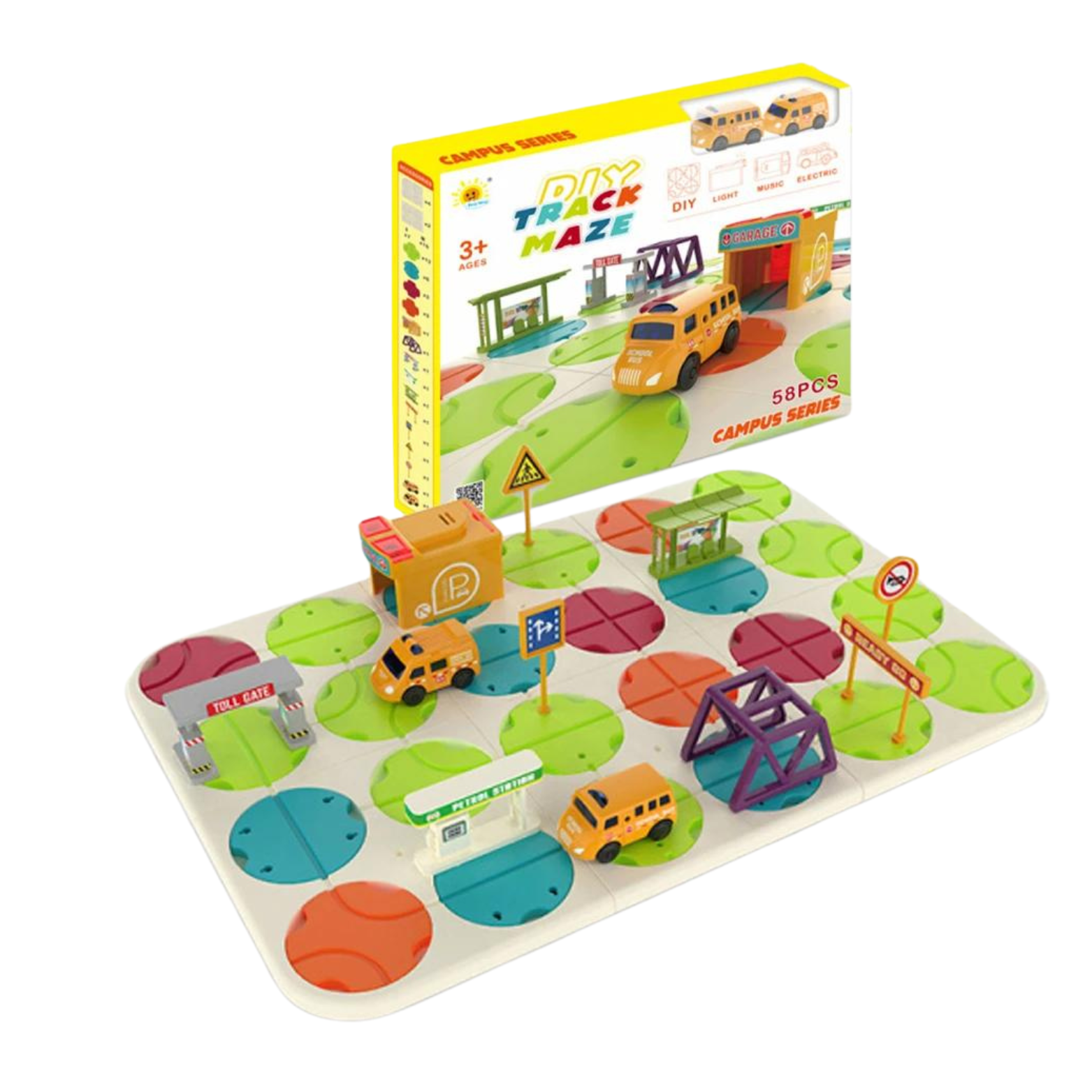 W tym zestawie dzieci konstruują własne trasy za pomocą różnorodnych klocków. Dolna płyta to podstawa całego toru. Celem gry jest poprowadzenie autobusu szkolnego i pojazdu z punktu startowego do punktu końcowego, wykorzystując wyłącznie zbudowaną trasę. Konstrukcja drogi to wyzwania, które pobudzi logiczne myślenie i rozwijanie umiejętności rozwiązywania problemów.