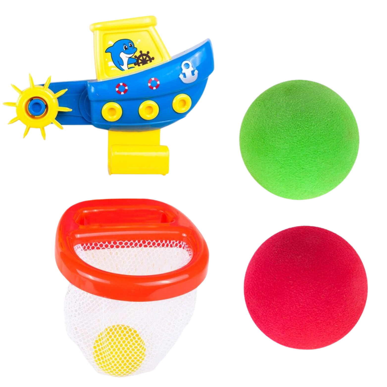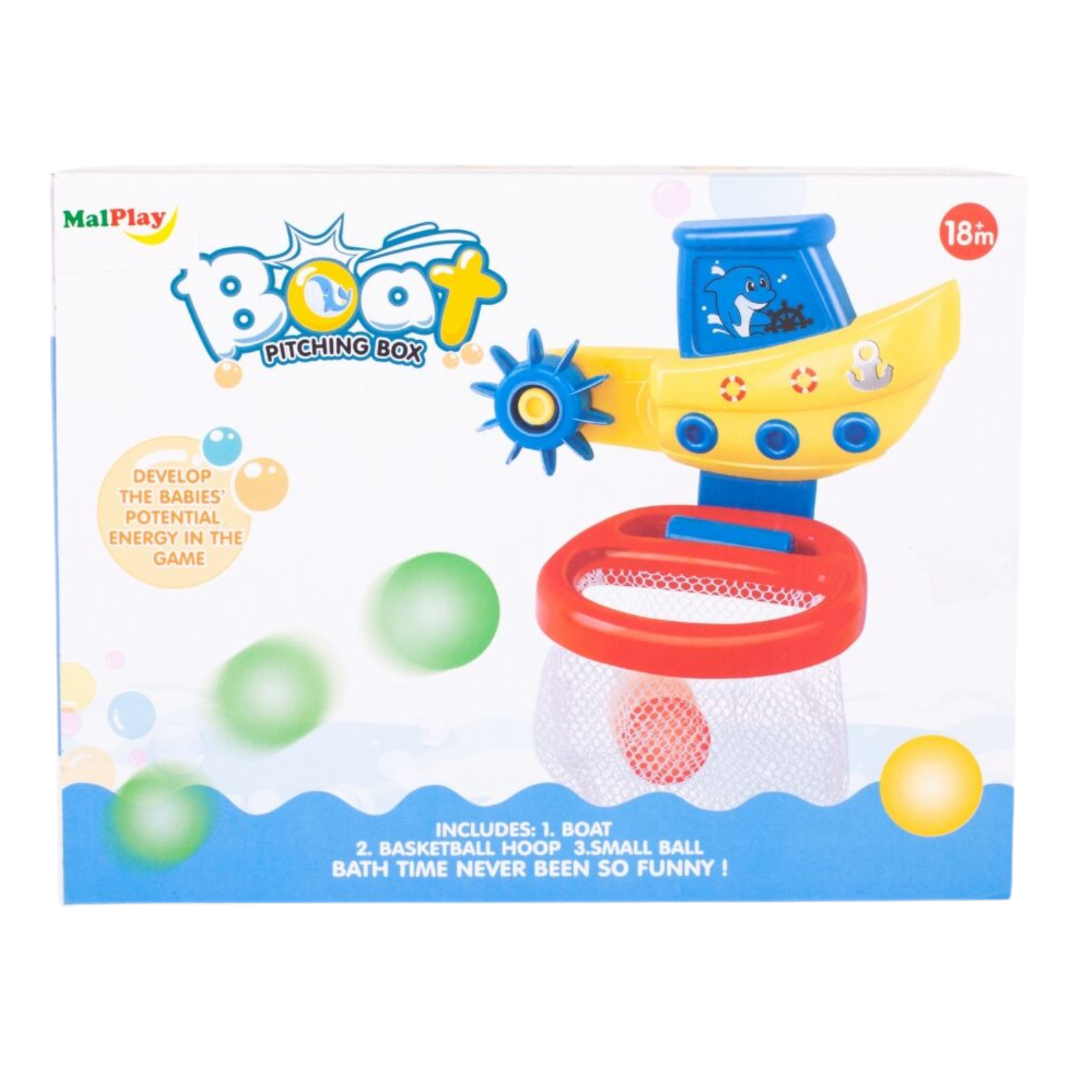 Zestaw składa się z uroczej łódki z koszem oraz trzech kolorowych piłeczek, które stanowią element interaktywnej zabawy. Podczas kąpieli maluch ma możliwość poczuć się jak na prawdziwej wyprawie łodzią. Zabawka z łatwością przyczepia się do ściany w łazience, dzięki czemu jest gotowa do użycia w każdej chwili.