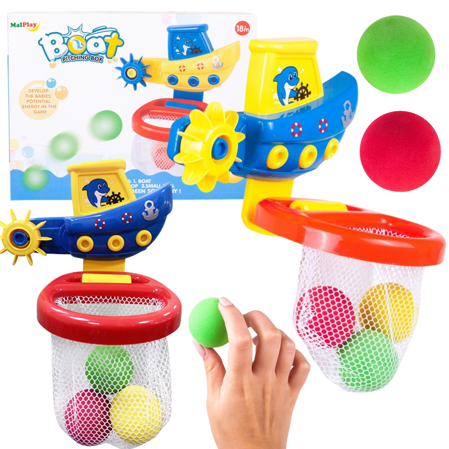 Zestaw Łódka Z Koszem I Piłeczkami Zabawka Do Kąpieli Celowanie Do Kosza