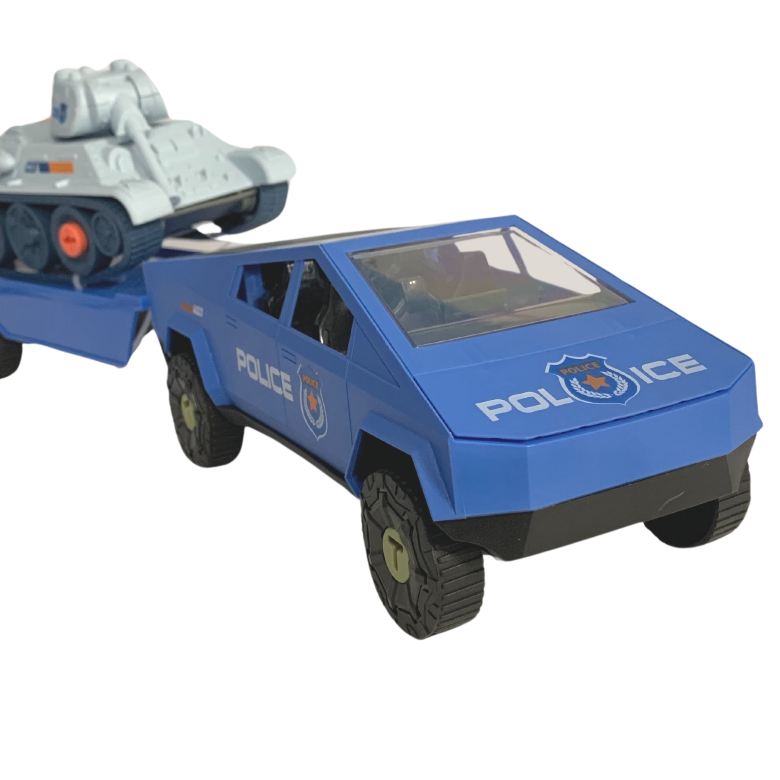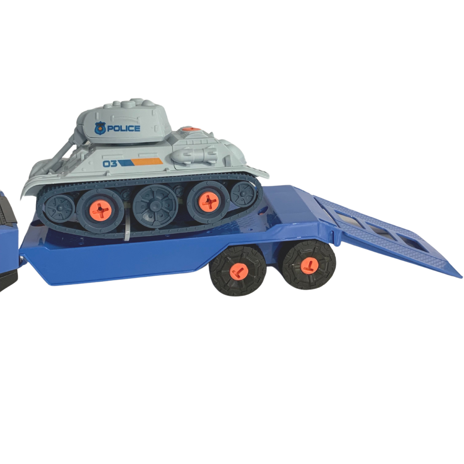Samochód z przesuwaną przyczepą to główny element zestawu. Wyposażony w ruchome części, samochód oferuje pełen zakres zabawy. Koła pojazdu można samodzielnie wkręcać i wykręcać, co rozwija zdolności motoryczne dziecka. Przyczepa zawiera czołg gotowy do jazdy! Elementy czołgu również można wkręcać i wykręcać według uznania.