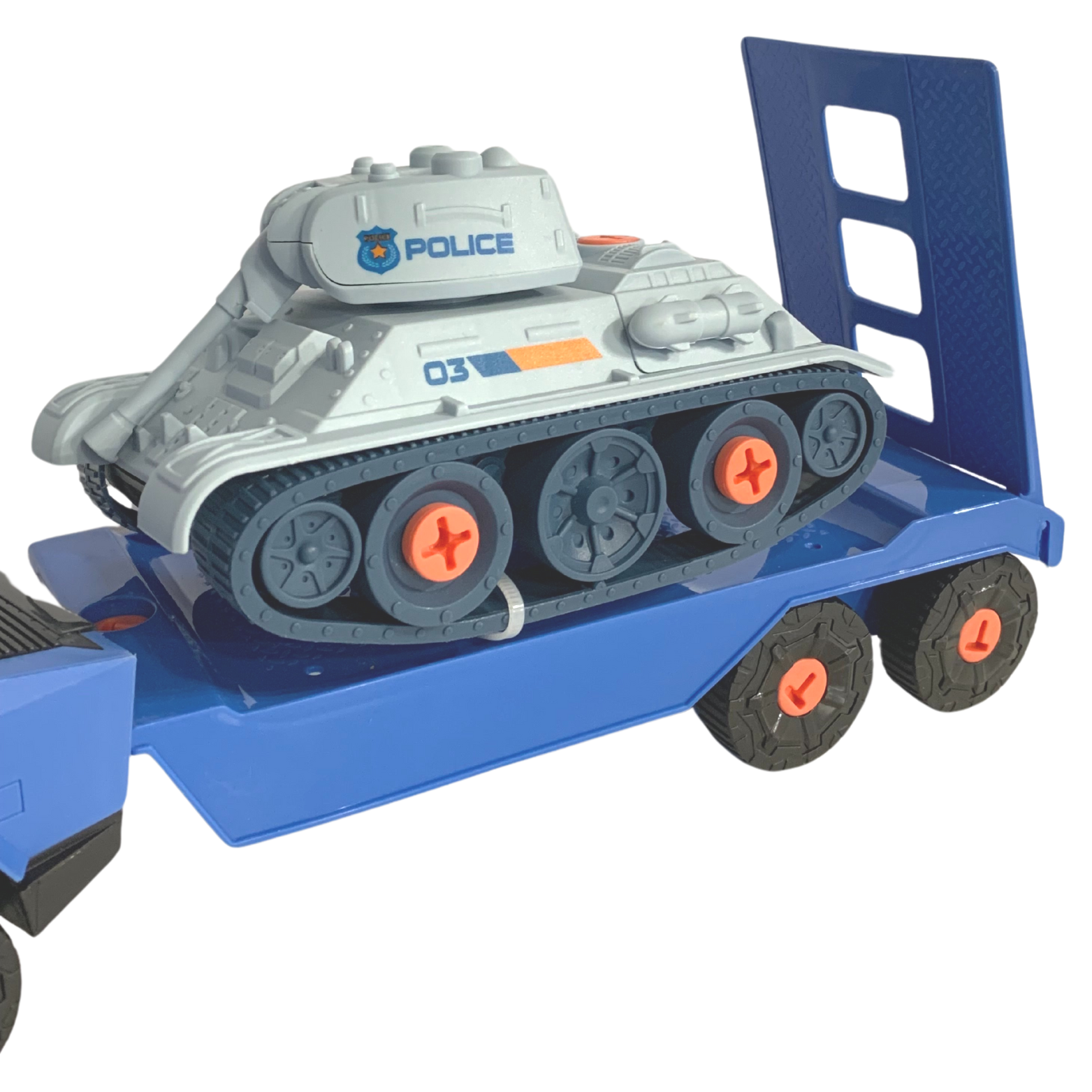 ZESTAW SAMOCHÓD DO MONTAŻU Z PRZYCZEPĄ CZOŁG ŚRUBOKRĘT WÓZ POLICYJNY