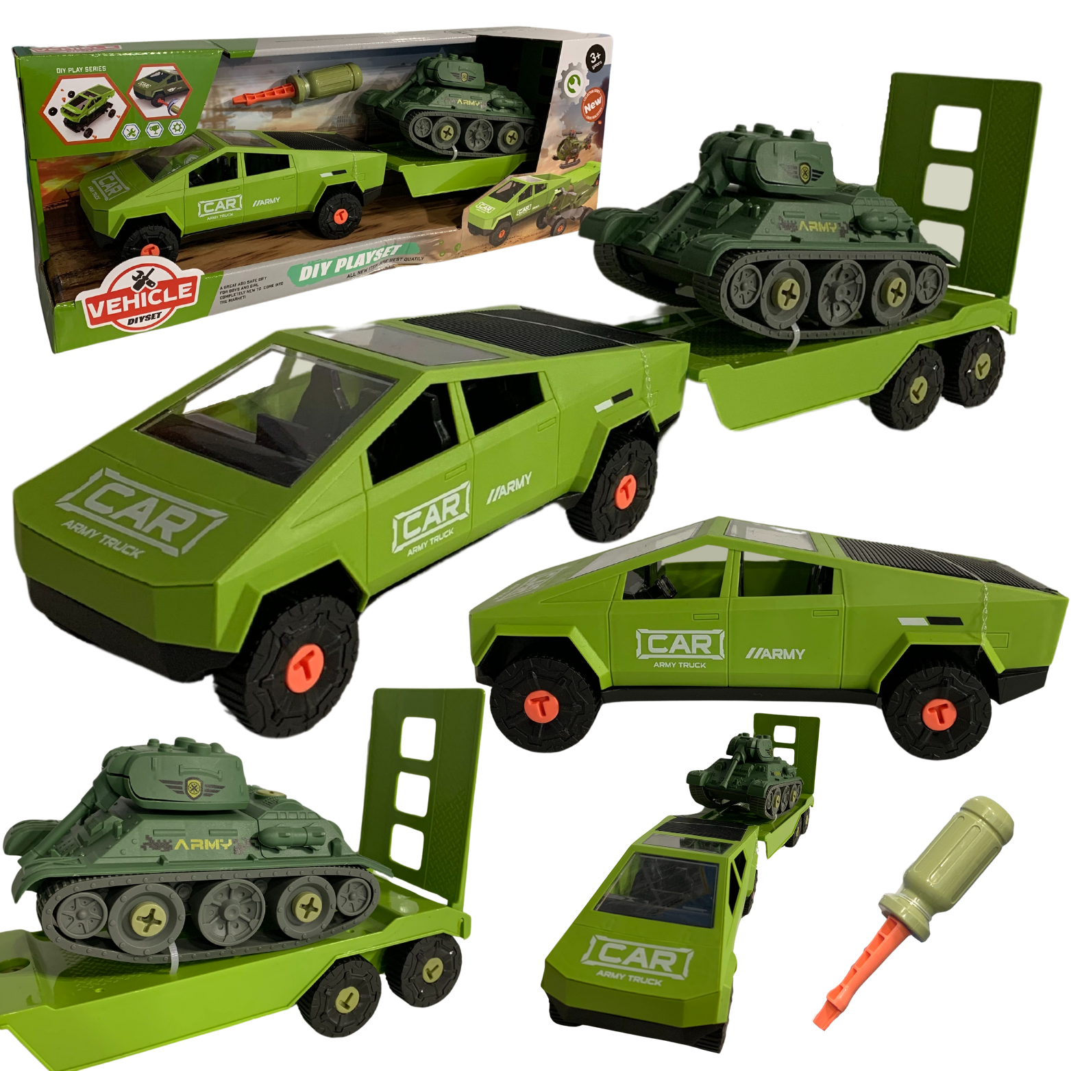 ZESTAW SAMOCHÓD DO SAMODZIELNEGO MONTAŻU PRZYCZEPA CZOŁG ŚRUBOKRĘT