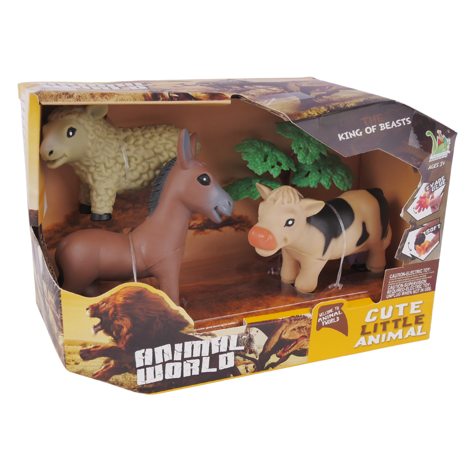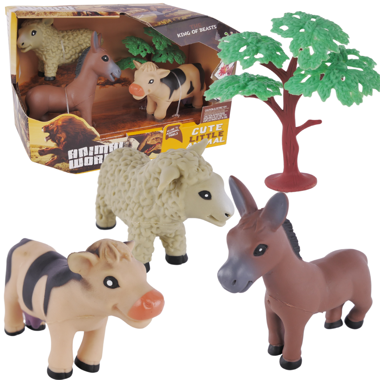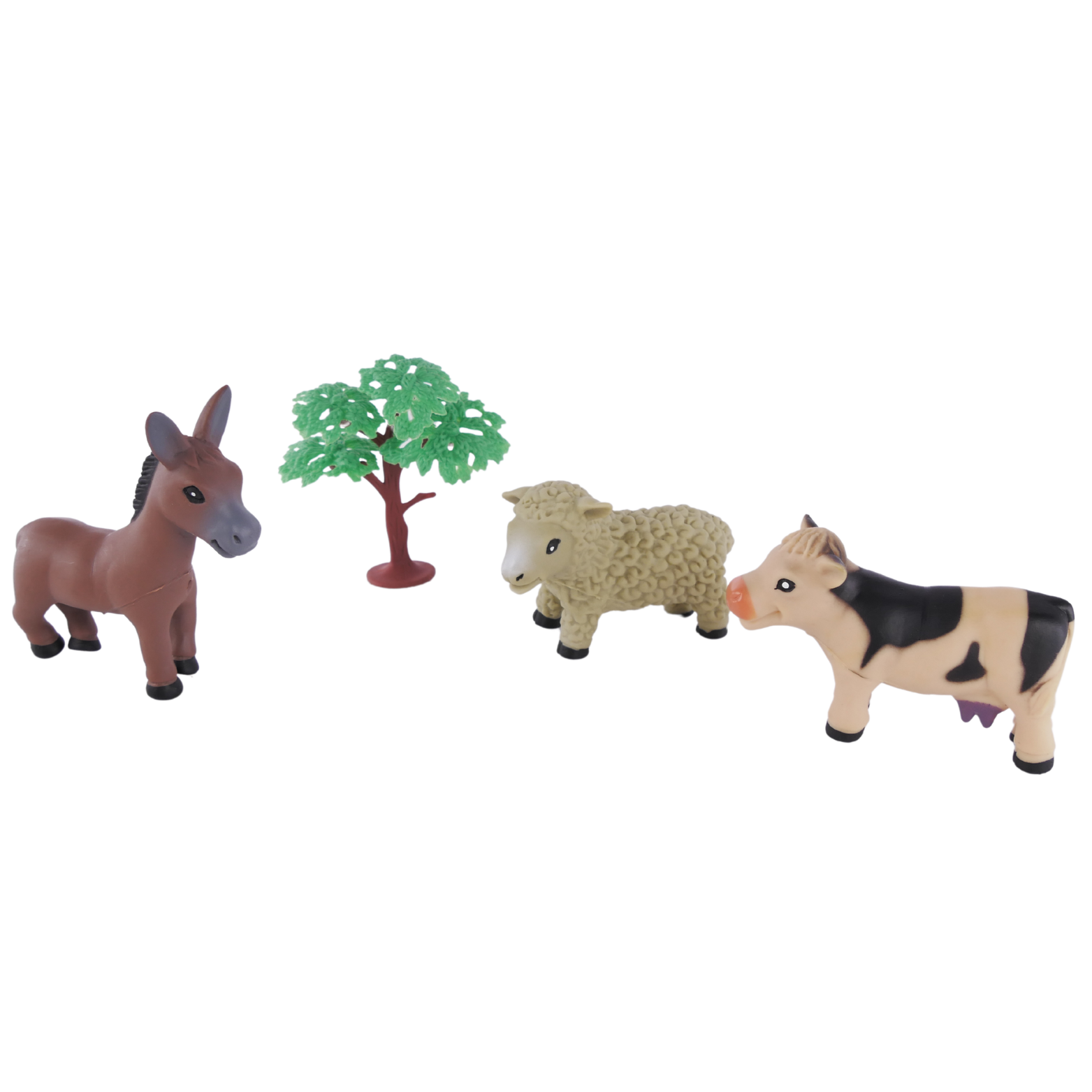 Zestaw ten skupia się na życiu na farmie i zawiera trzy urocze zwierzęta wiejskie: osiołka, krówkę i owieczkę, oraz piękne drzewko.